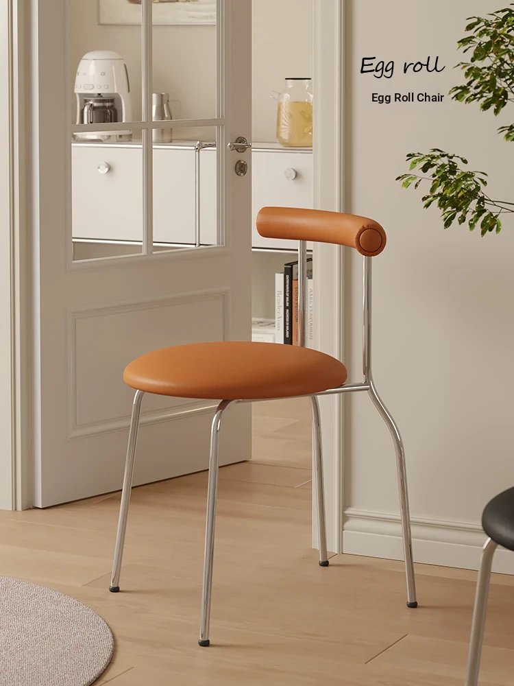 Modern Designer Dining Chair with Soft Cushion - Trendy Ins Style Brown Leather Upholstered Backrest Chair for a Chic Dining Room Experience