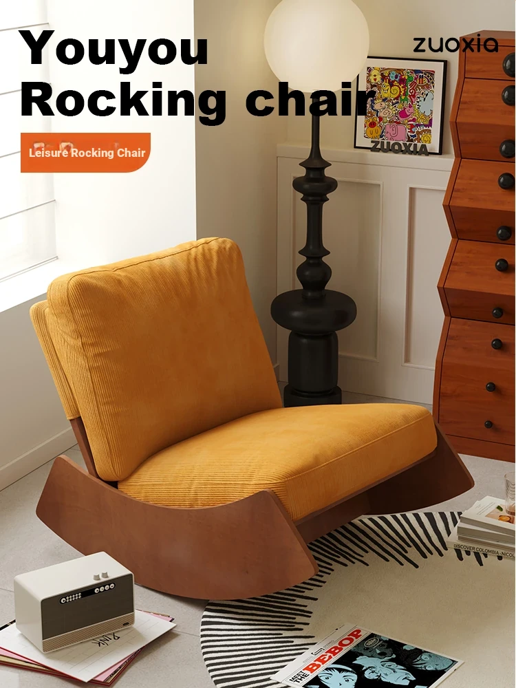 Vintage Solid Wood Rocking Chair - Scandinavian Style Single Sofa for Living Room, Designer Lounge Chair for Home and Balcony, Trendy and Comfortable