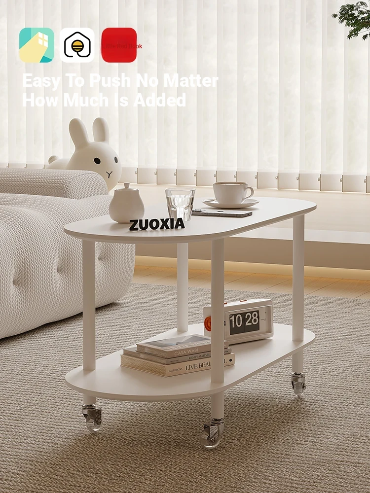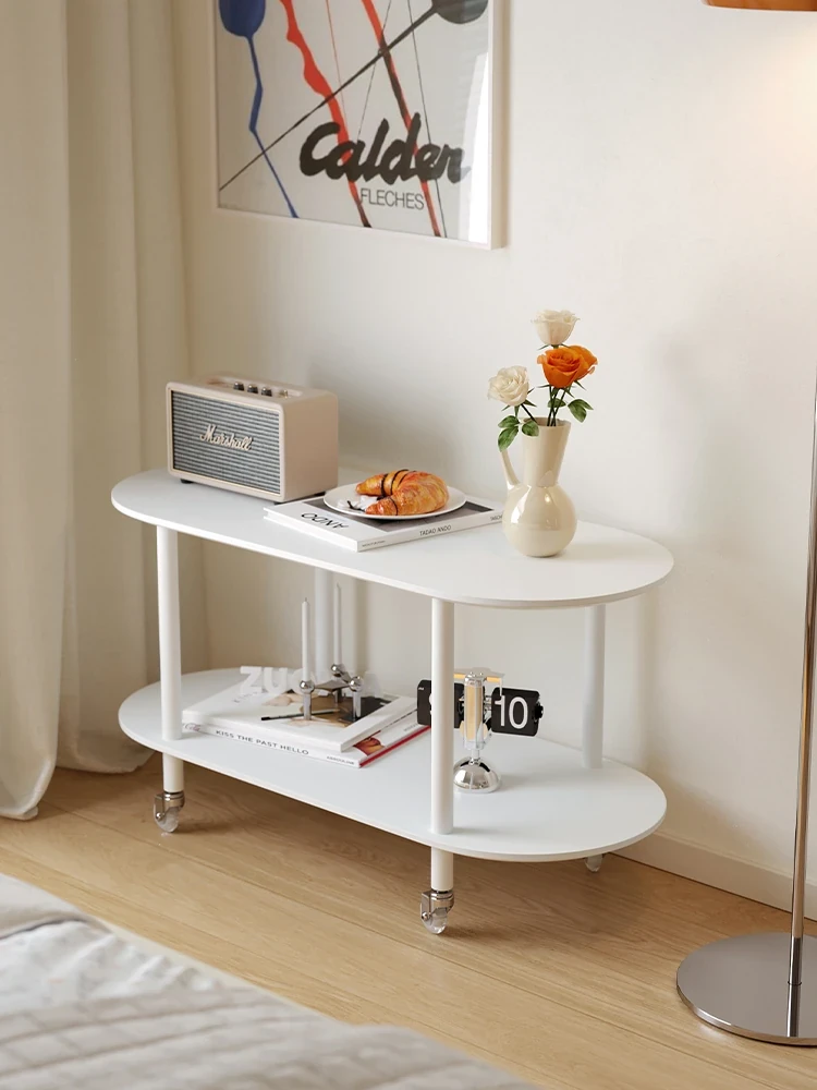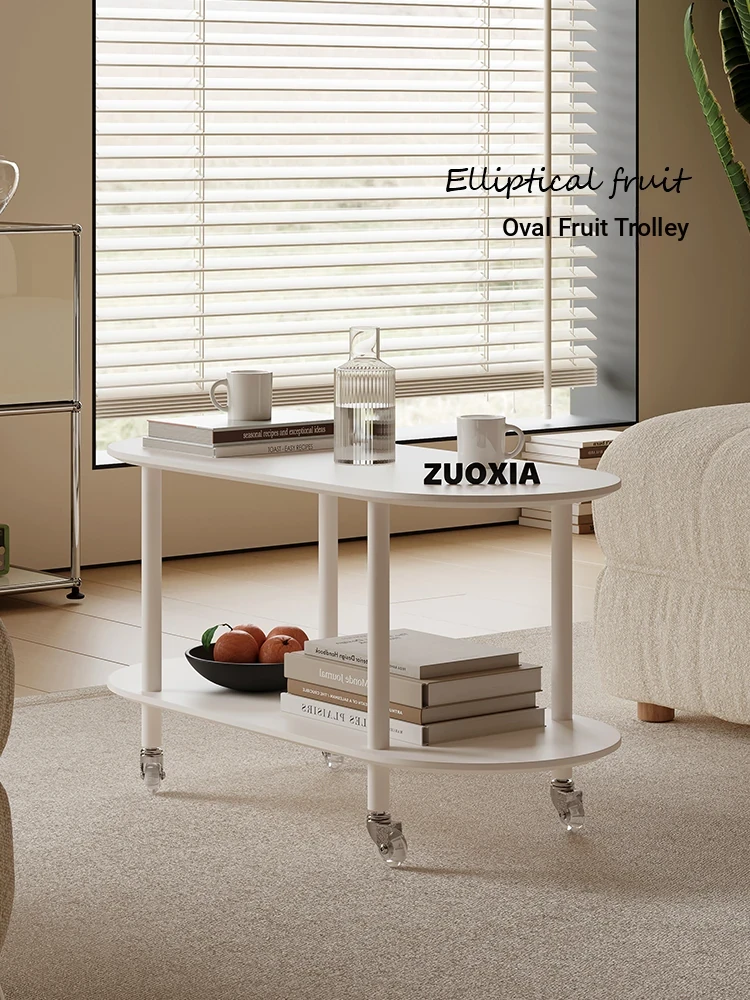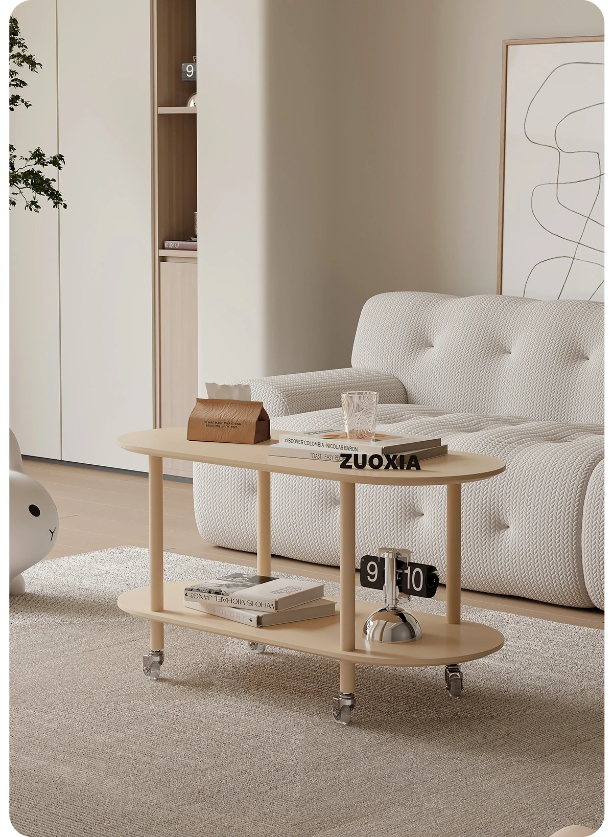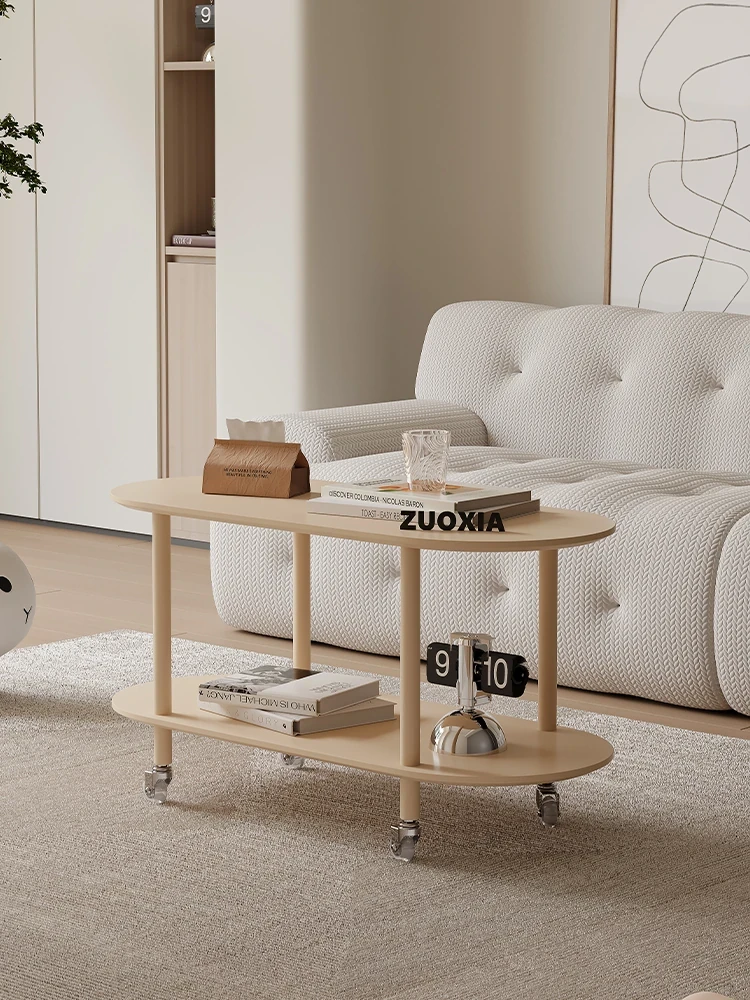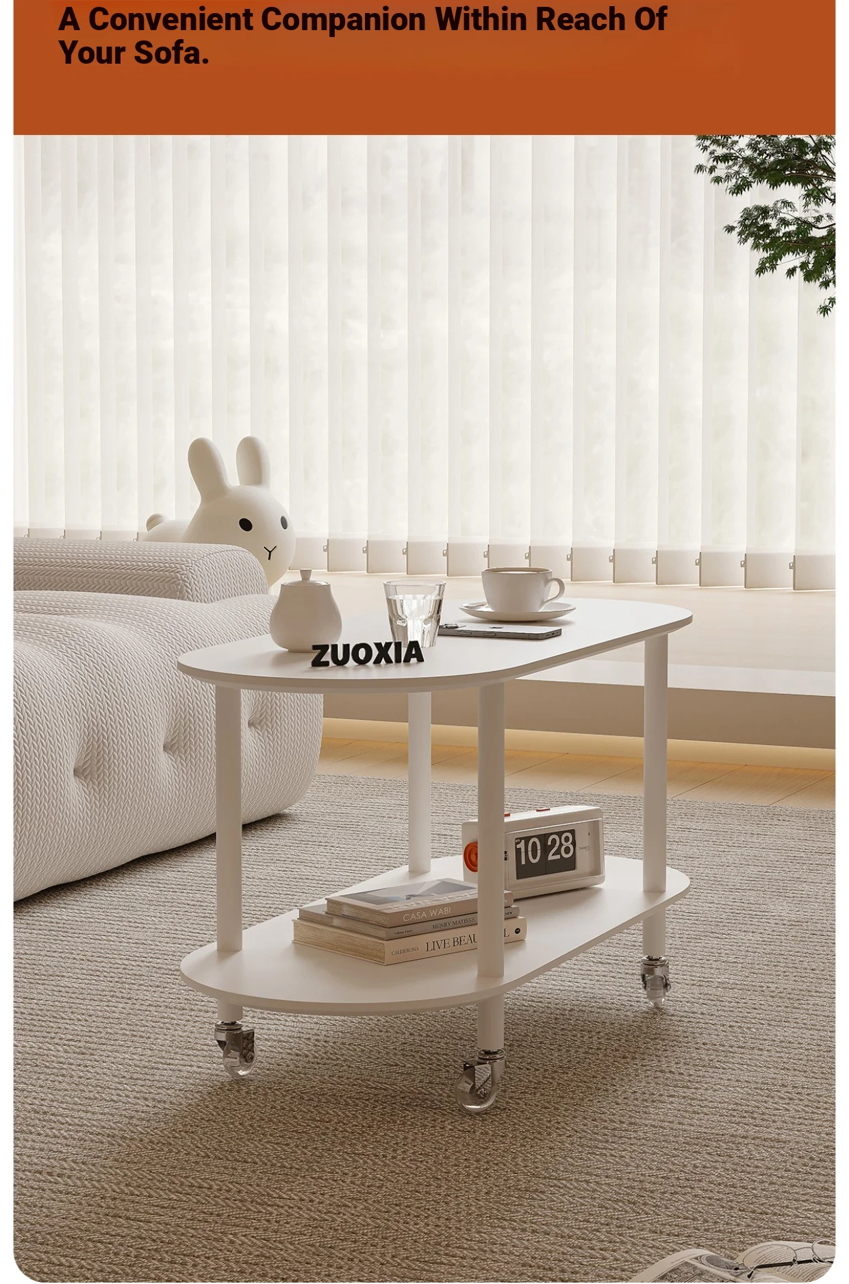 Clearance Sale: Stylish Cream-Colored Sofa Side Table - Trendy Double-Layer Moveable Tea Cart for Living Room Storage and Organization