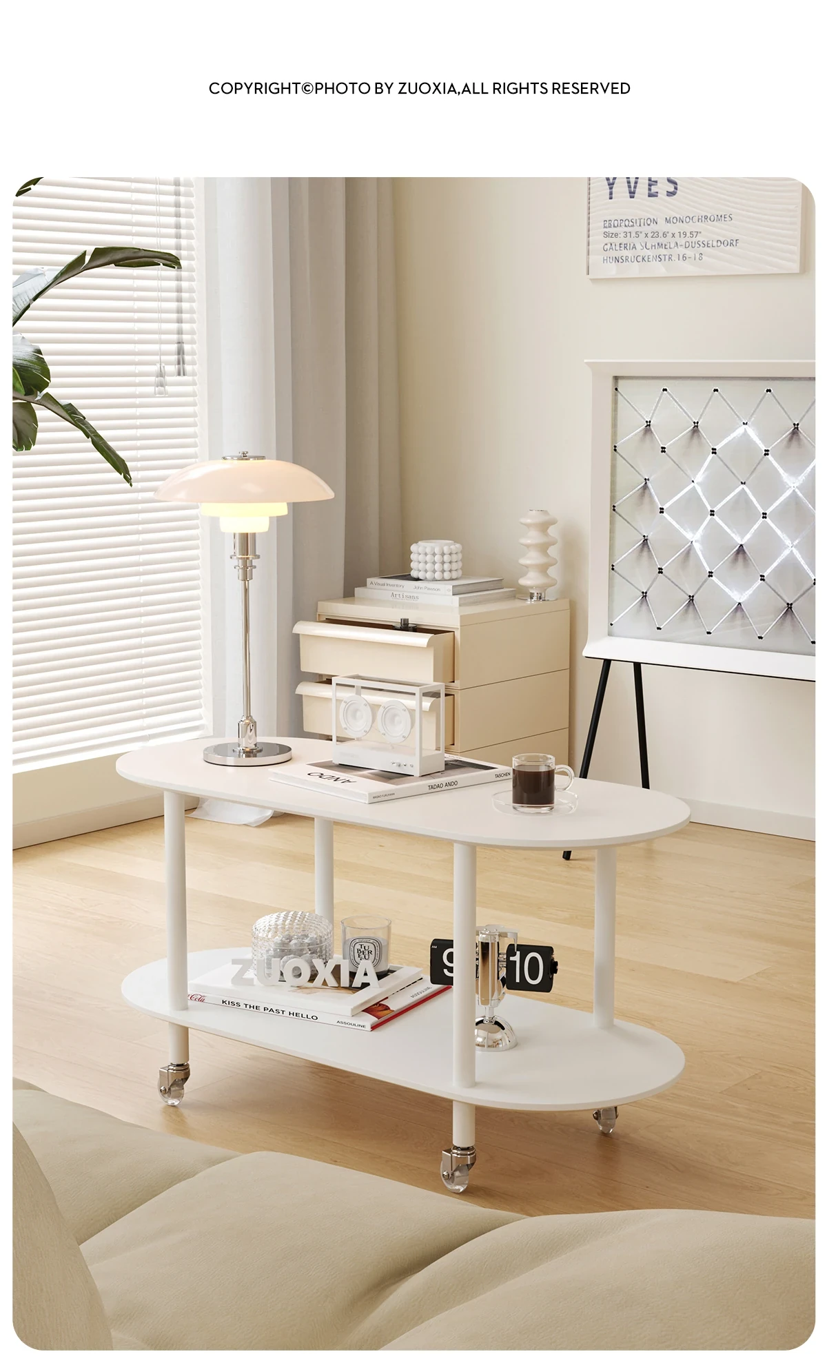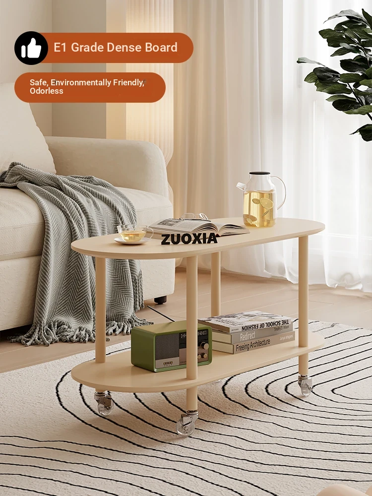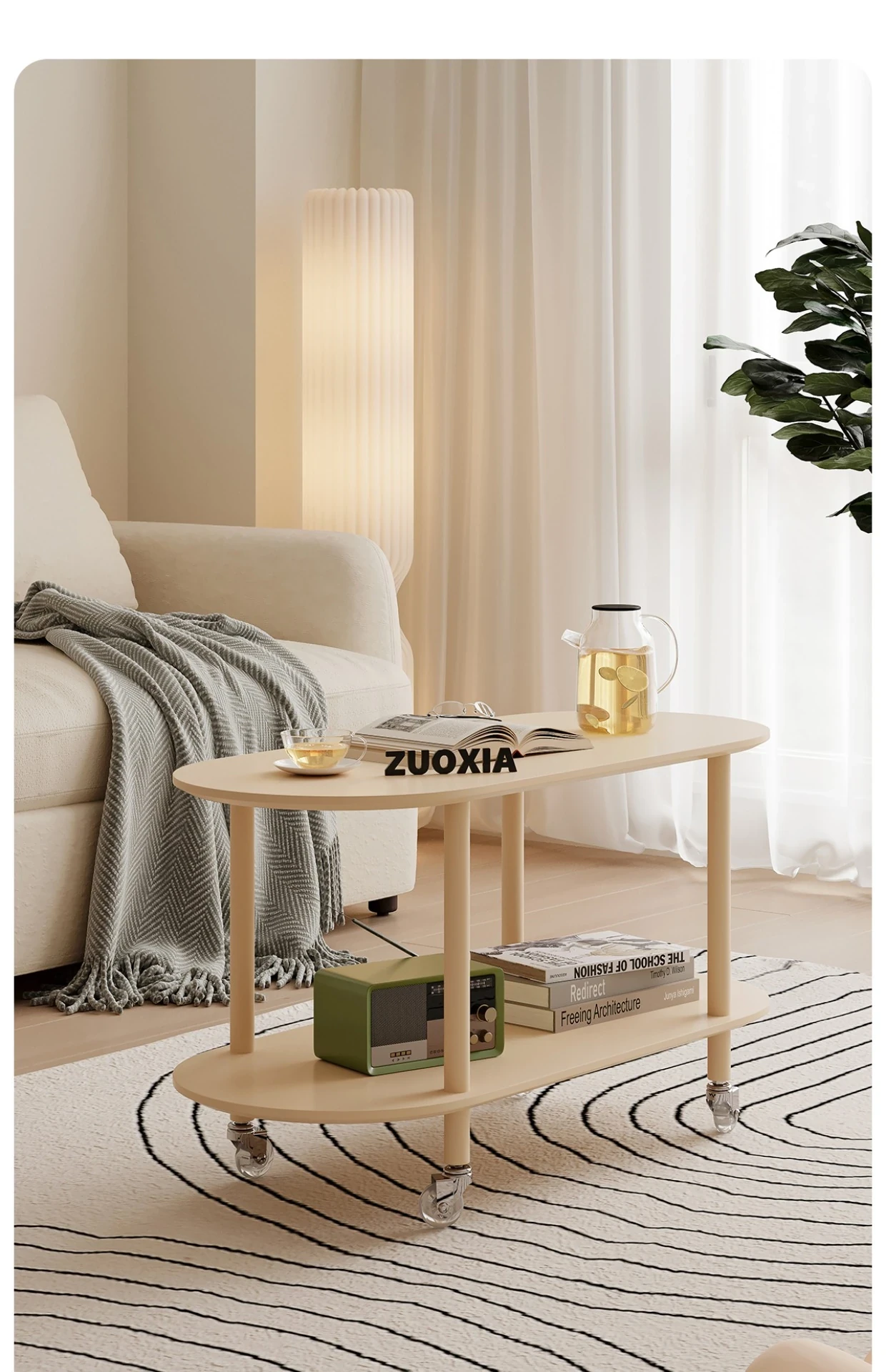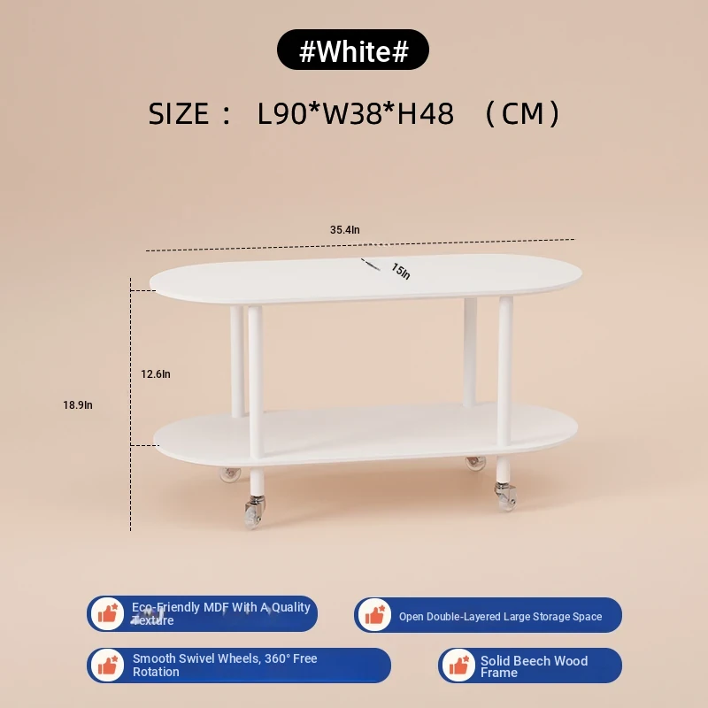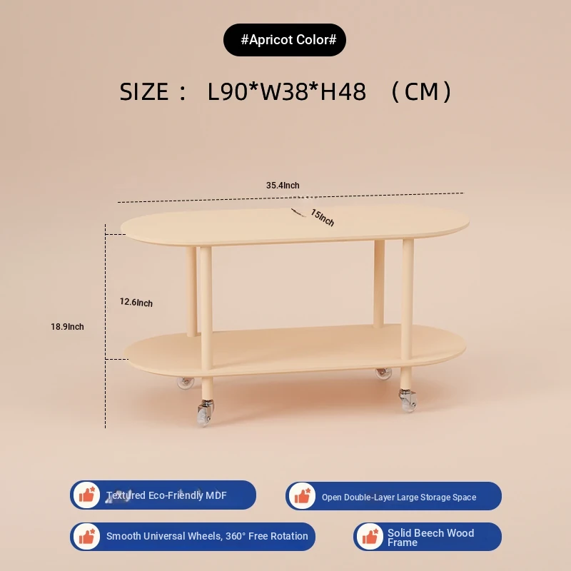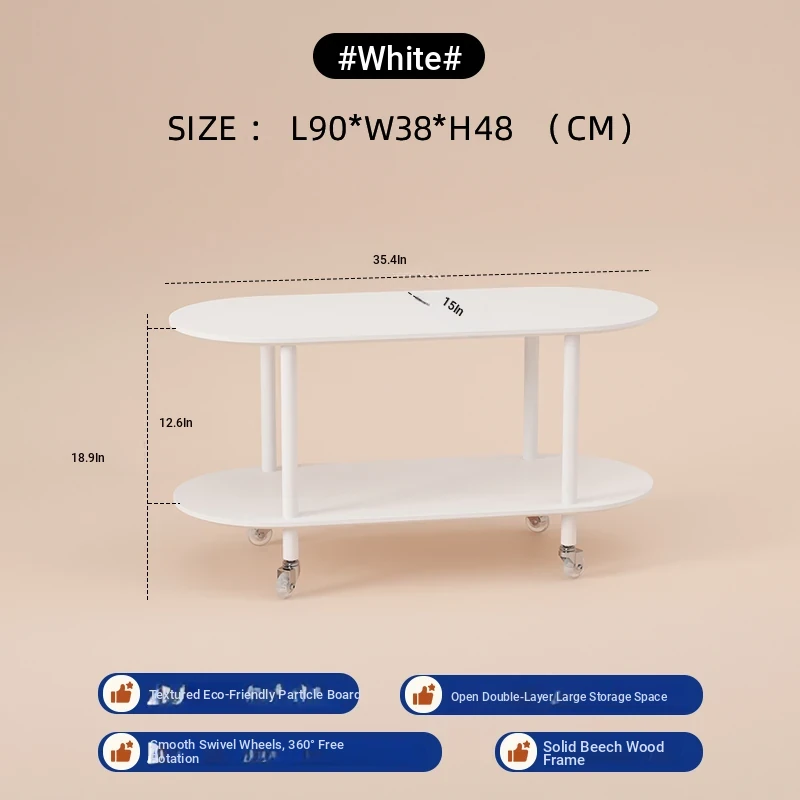 Clearance Sale: Stylish Cream-Colored Sofa Side Table - Trendy Double-Layer Moveable Tea Cart for Living Room Storage and Organization