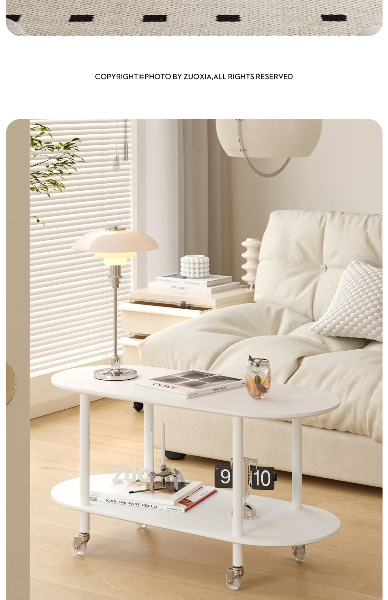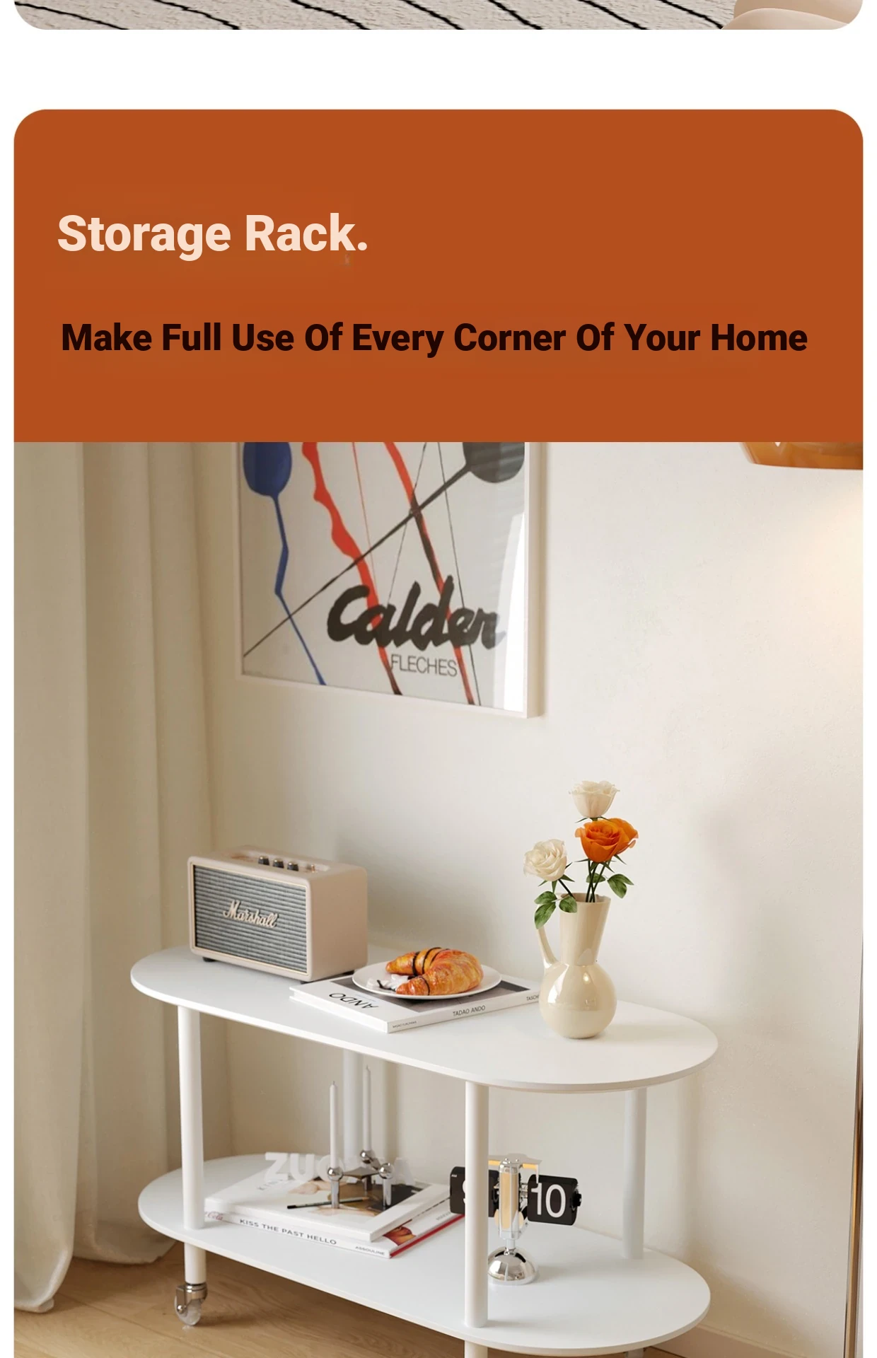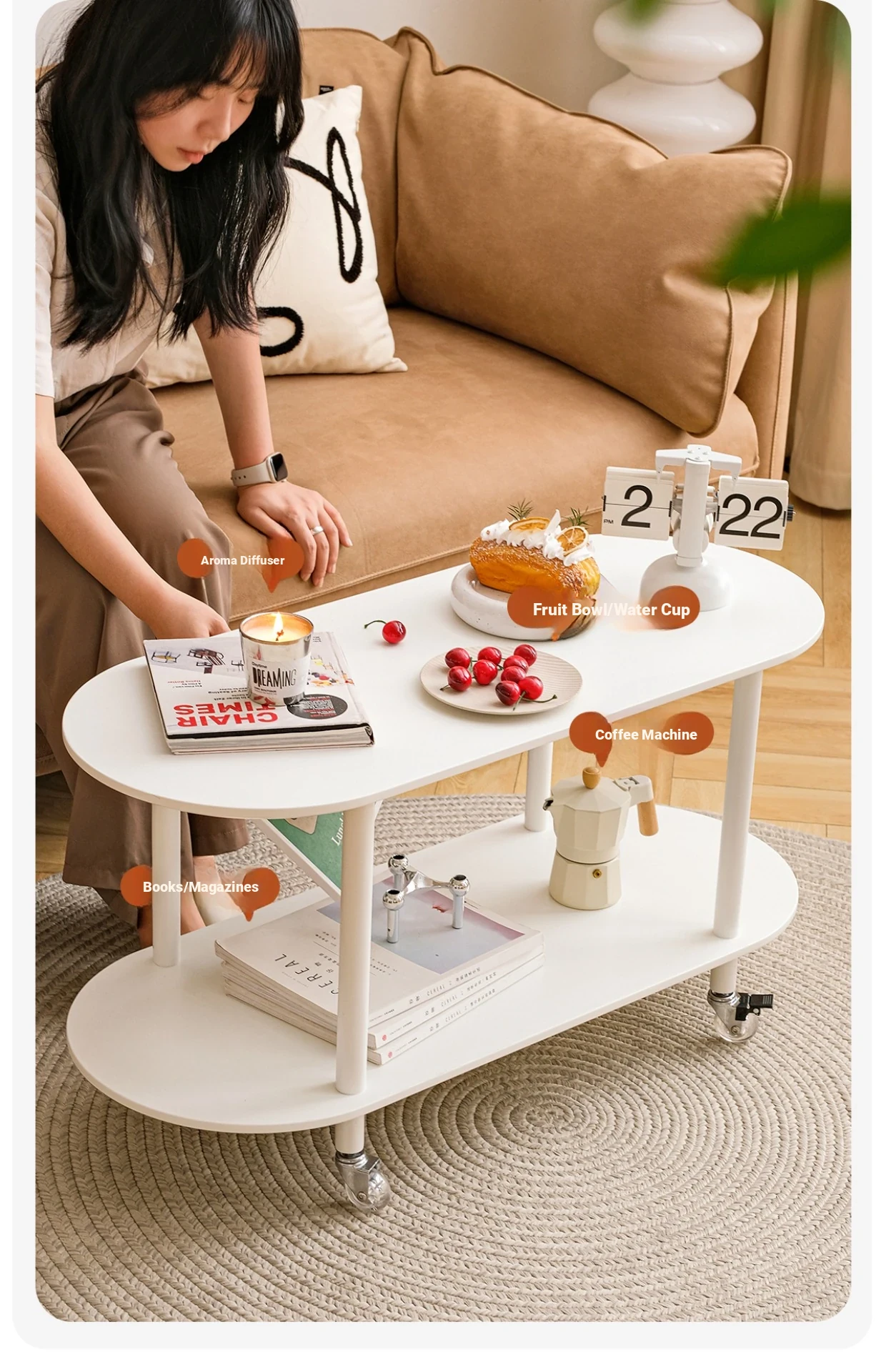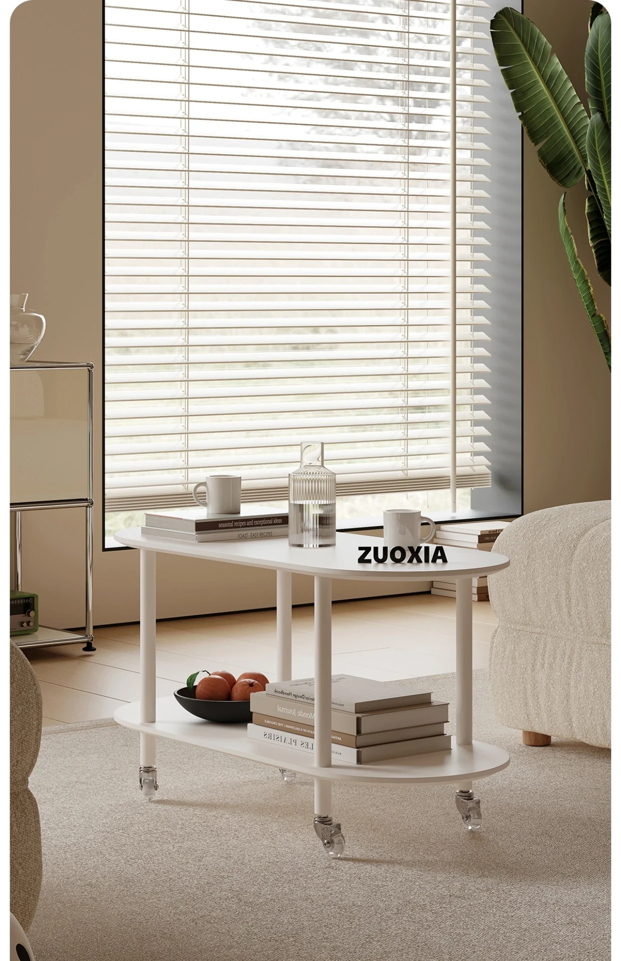 Clearance Sale: Stylish Cream-Colored Sofa Side Table - Trendy Double-Layer Moveable Tea Cart for Living Room Storage and Organization
