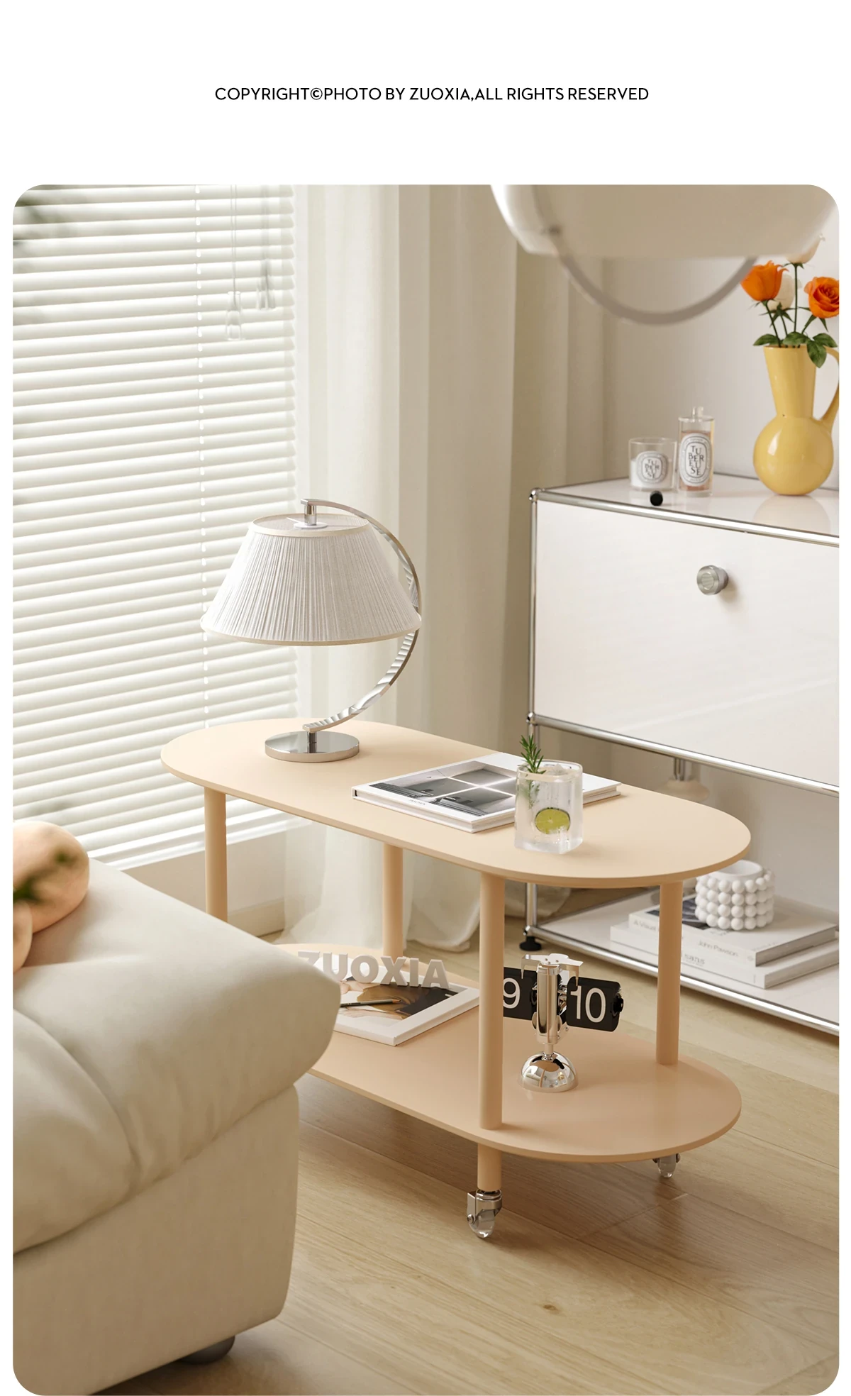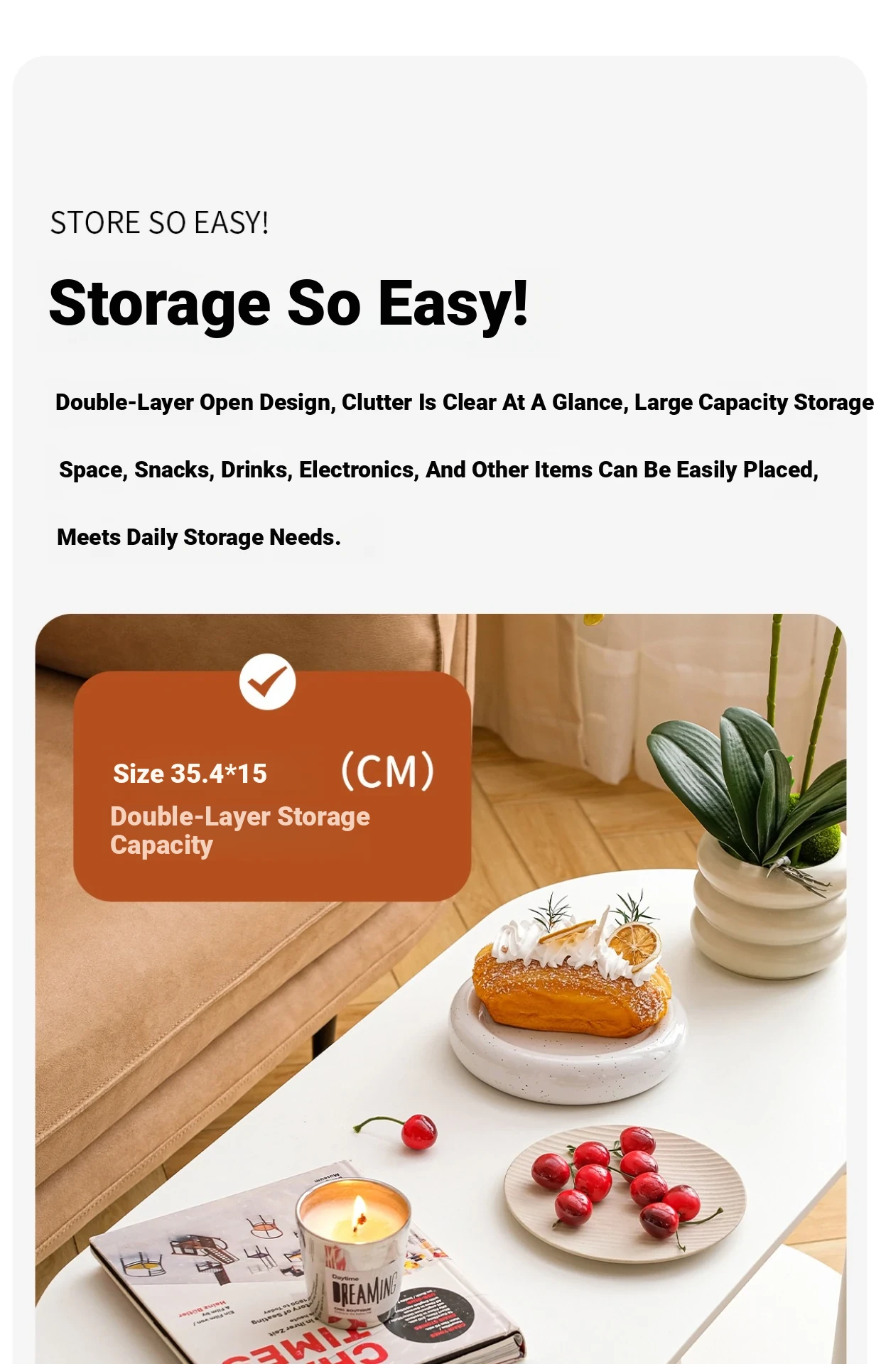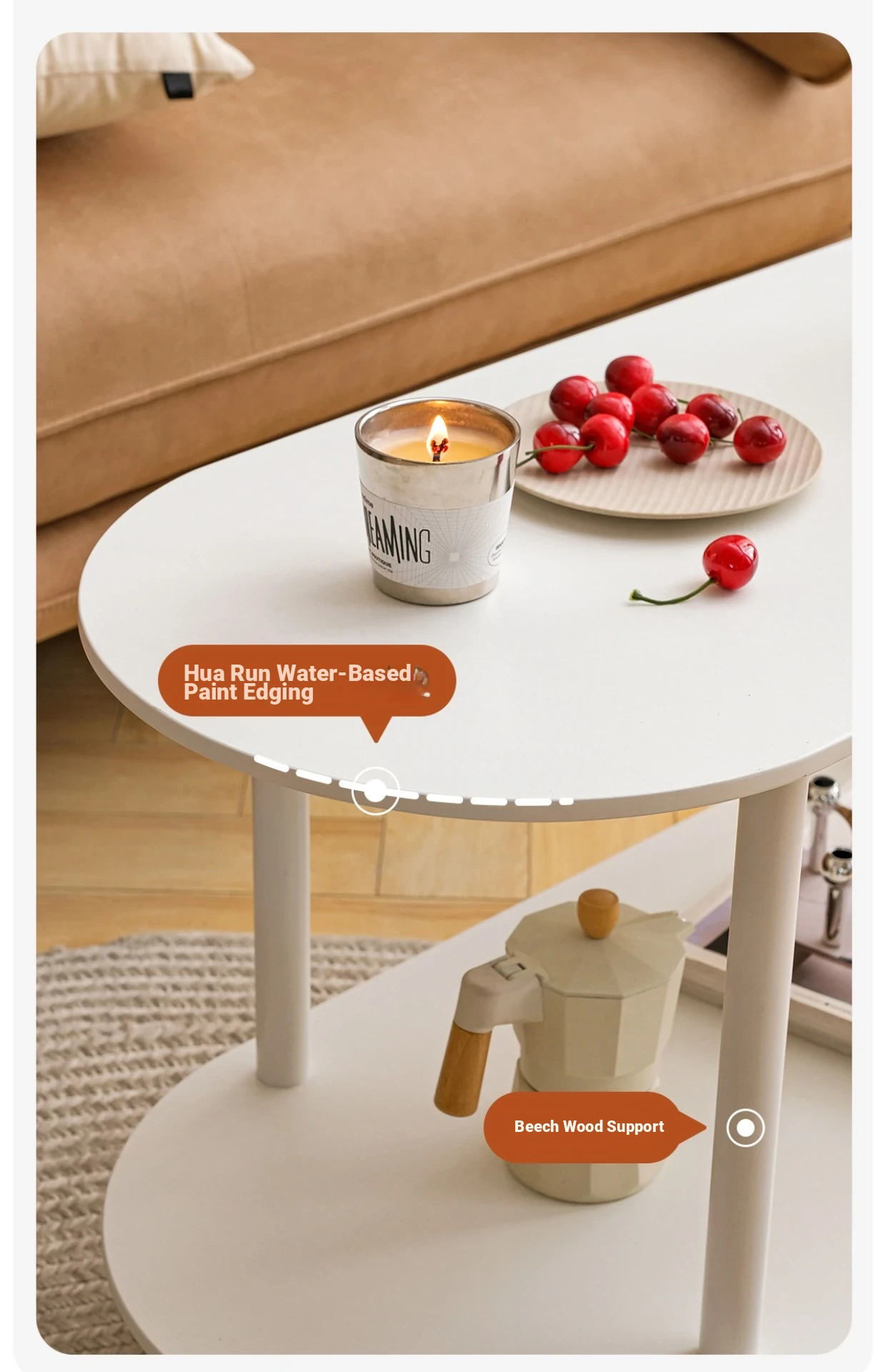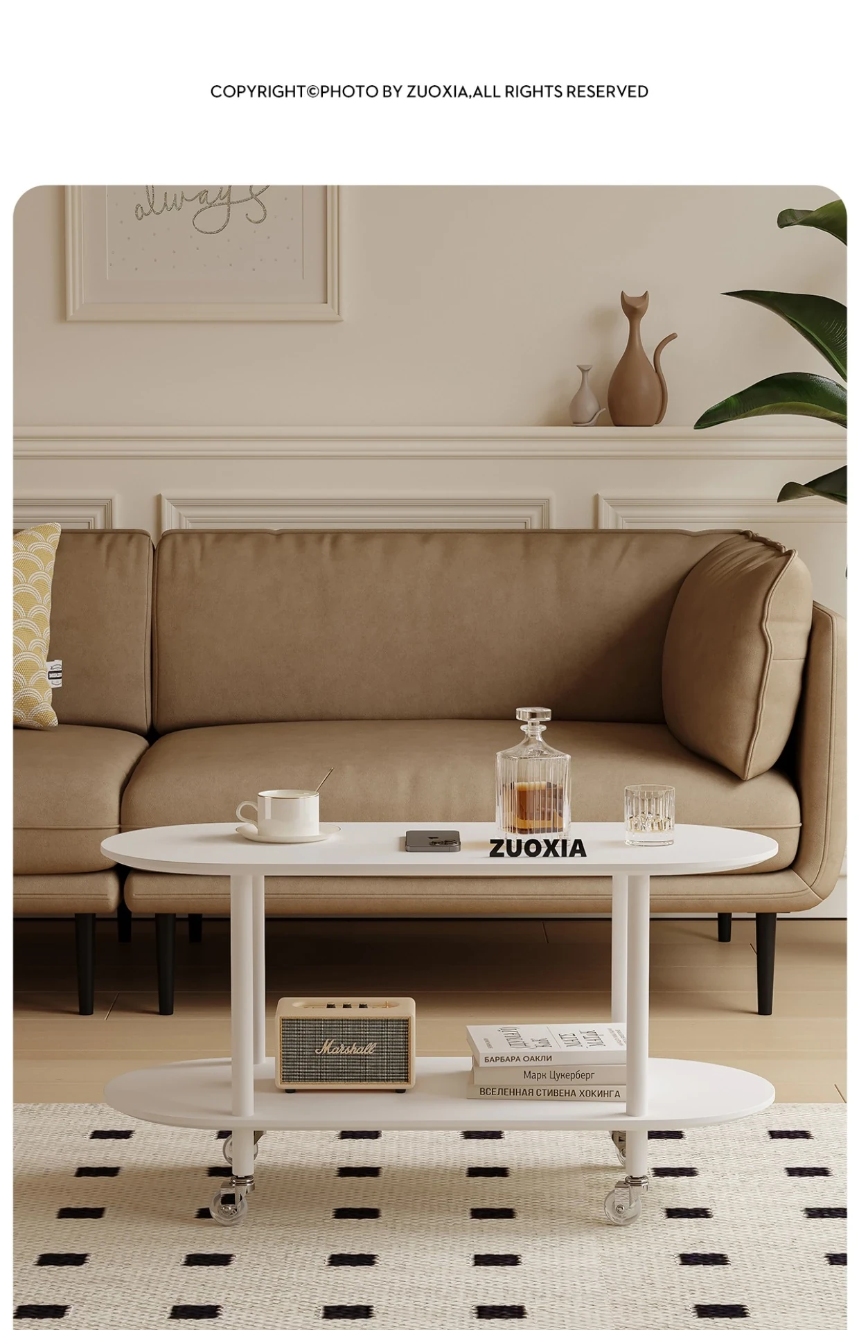 Clearance Sale: Stylish Cream-Colored Sofa Side Table - Trendy Double-Layer Moveable Tea Cart for Living Room Storage and Organization