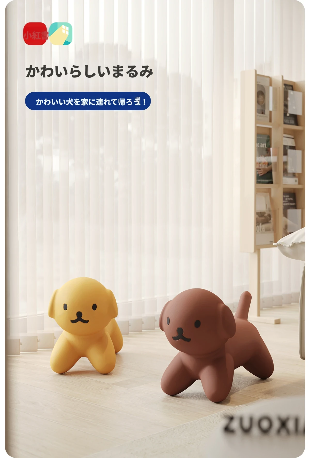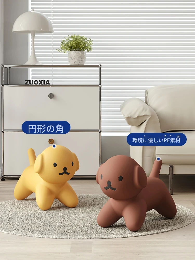 左下家用ネット人気クリエイティブ動物椅子 子供用カートゥーンかわいい小犬型スツール リビングルーム用靴替えスツールで、おしゃれで楽しい空間を演出!