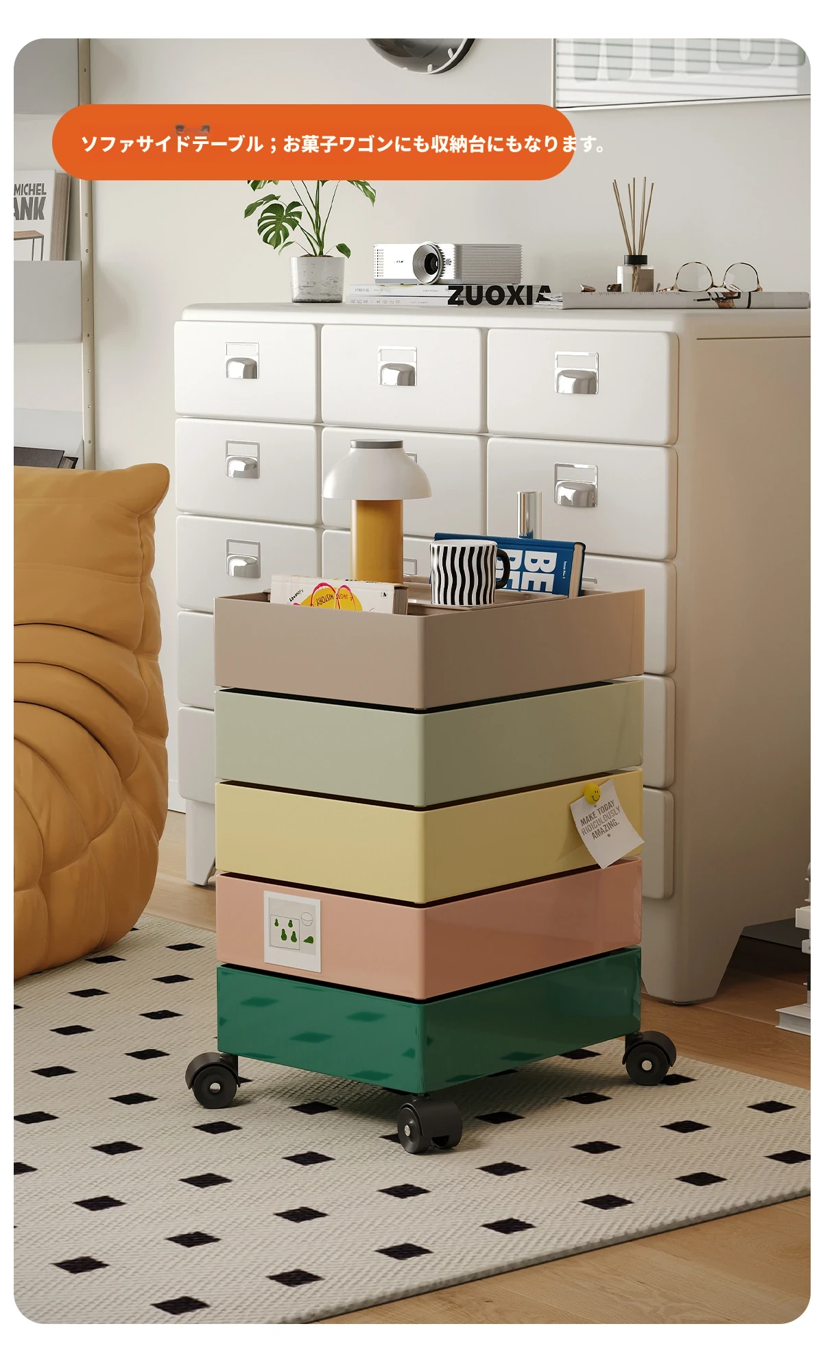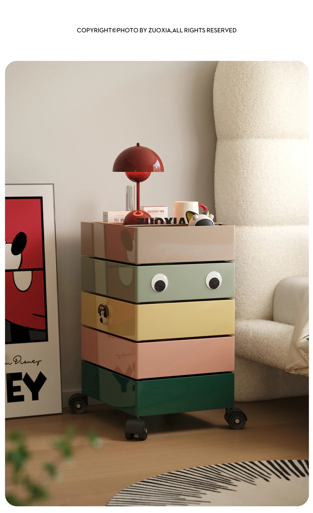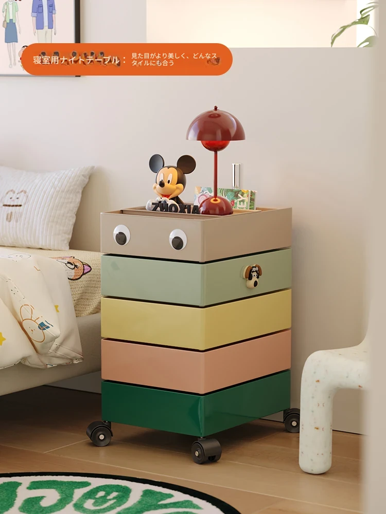 左下子供用ナイトテーブル 小型収納キャビネット 人気のキッズルーム用 カートゥーンデザイン 可愛いお菓子収納にも最適な男の子・女の子用家具