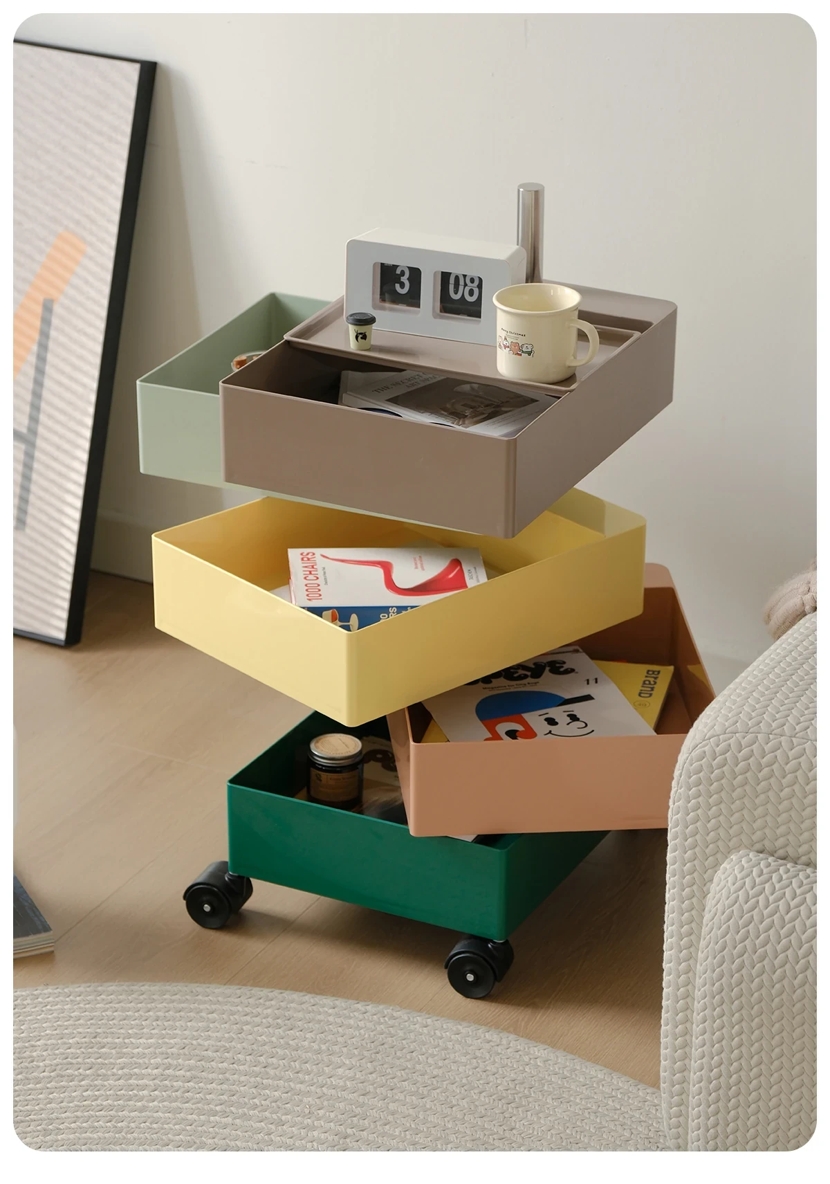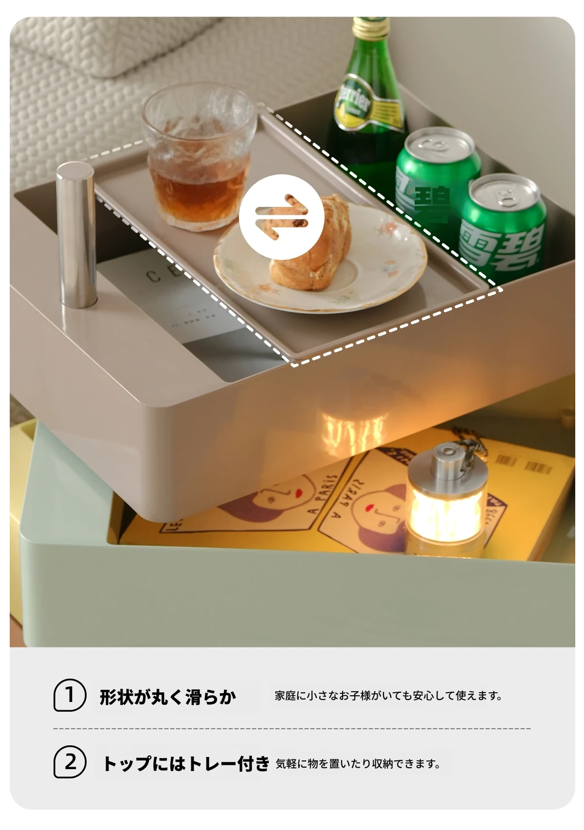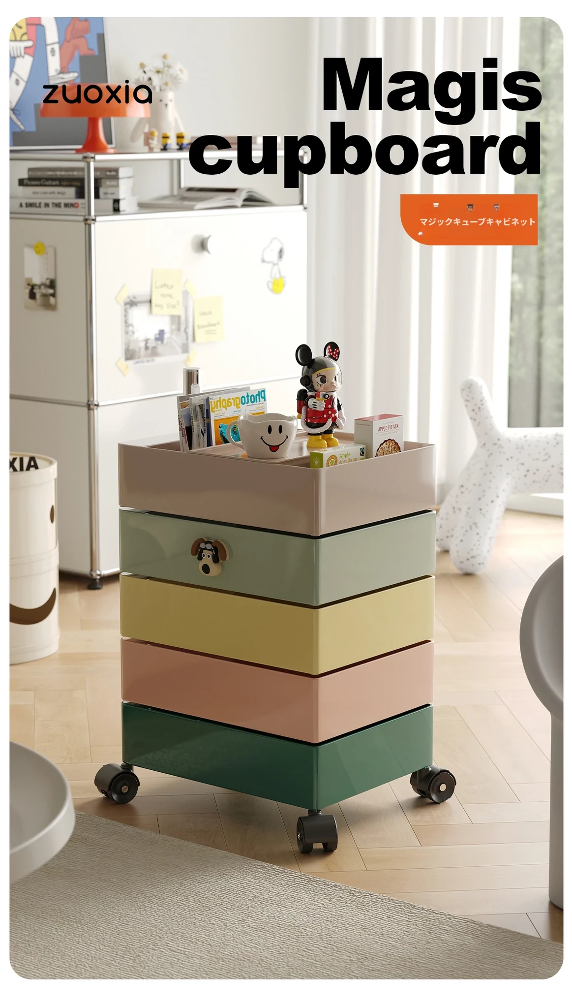 左下子供用ナイトテーブル 小型収納キャビネット 人気のキッズルーム用 カートゥーンデザイン 可愛いお菓子収納にも最適な男の子・女の子用家具