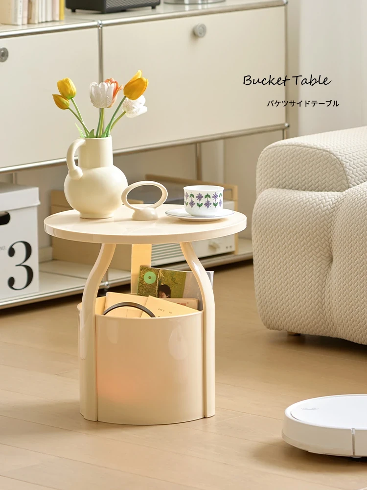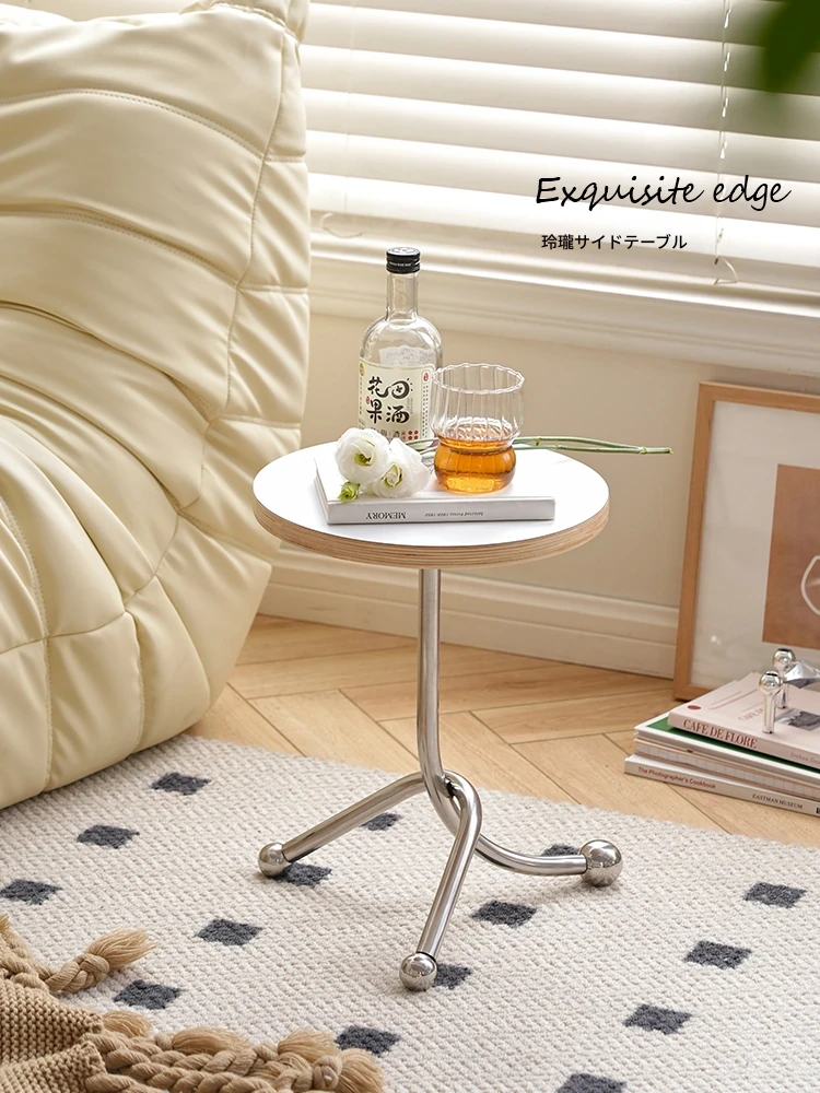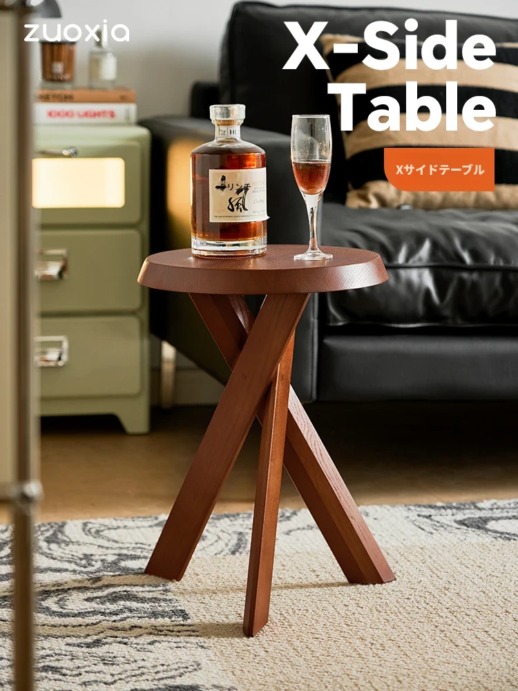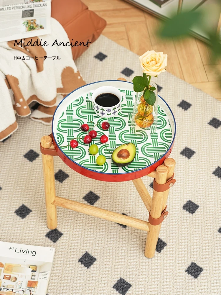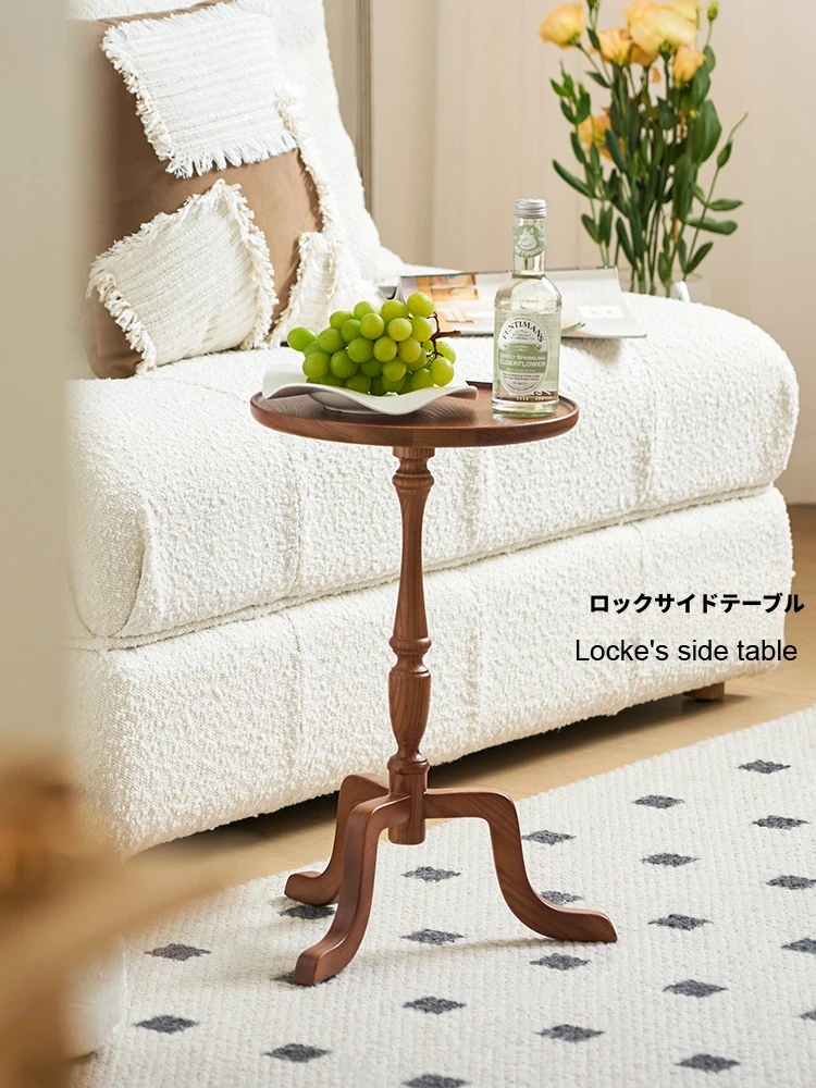 左下バラの丸いフランス風アンティーク無垢材ソファサイドテーブル 小型リビングに最適 家庭用ティーテーブル レトロな小さな円卓