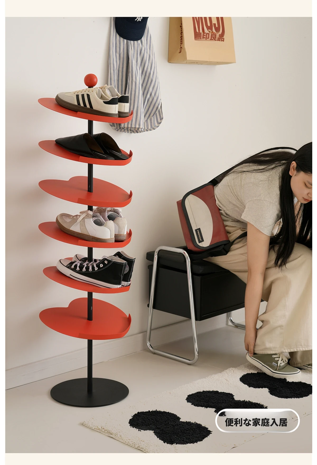 2025年新作!左下愛心シューラック - 多層家庭用玄関靴収納、シンプルでコンパクトなスリムデザイン。狭いスペースにも最適!おしゃれで機能的な靴収納で、玄関をスッキリさせましょう!