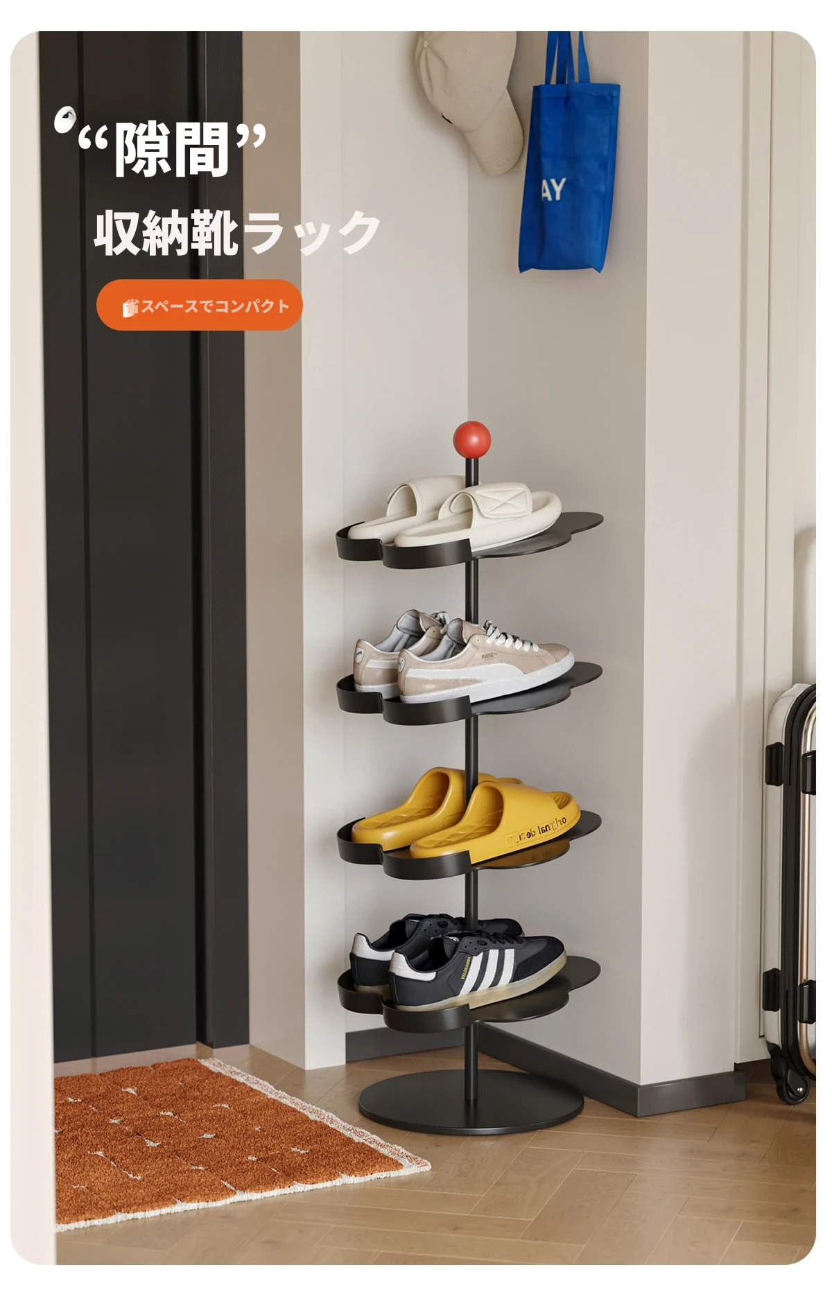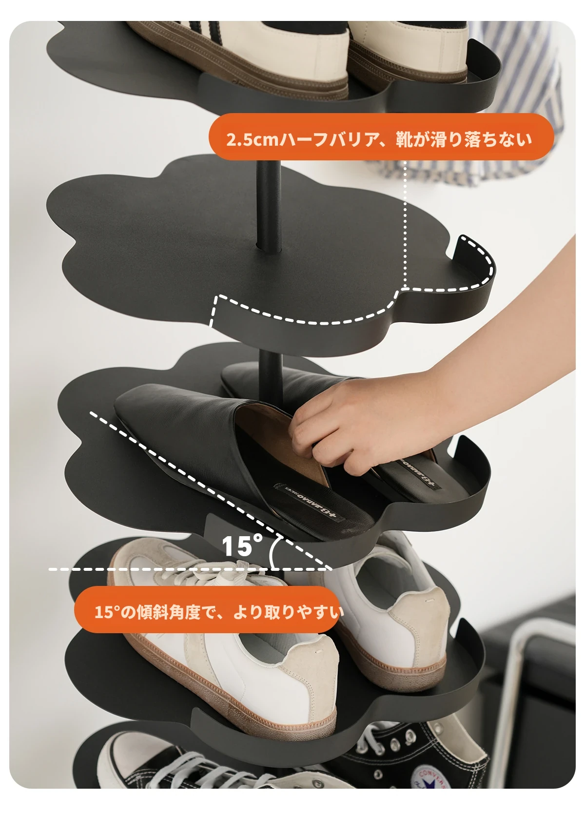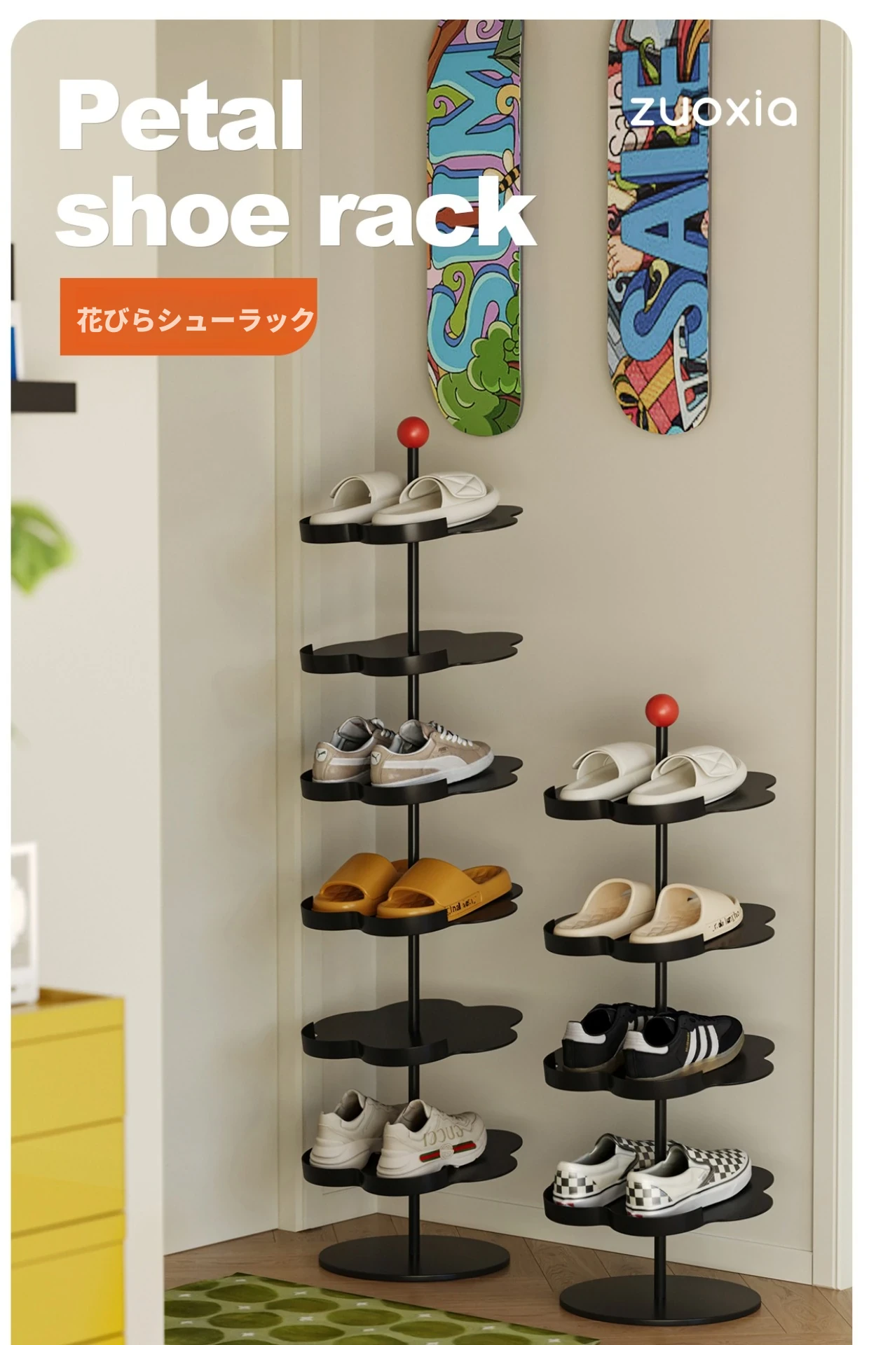 左下花弁型シューラック - 多層収納の家庭用玄関靴箱!スペースを節約し、室内をスッキリ整理!簡易設計で狭い場所にもぴったり!
