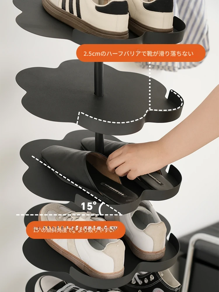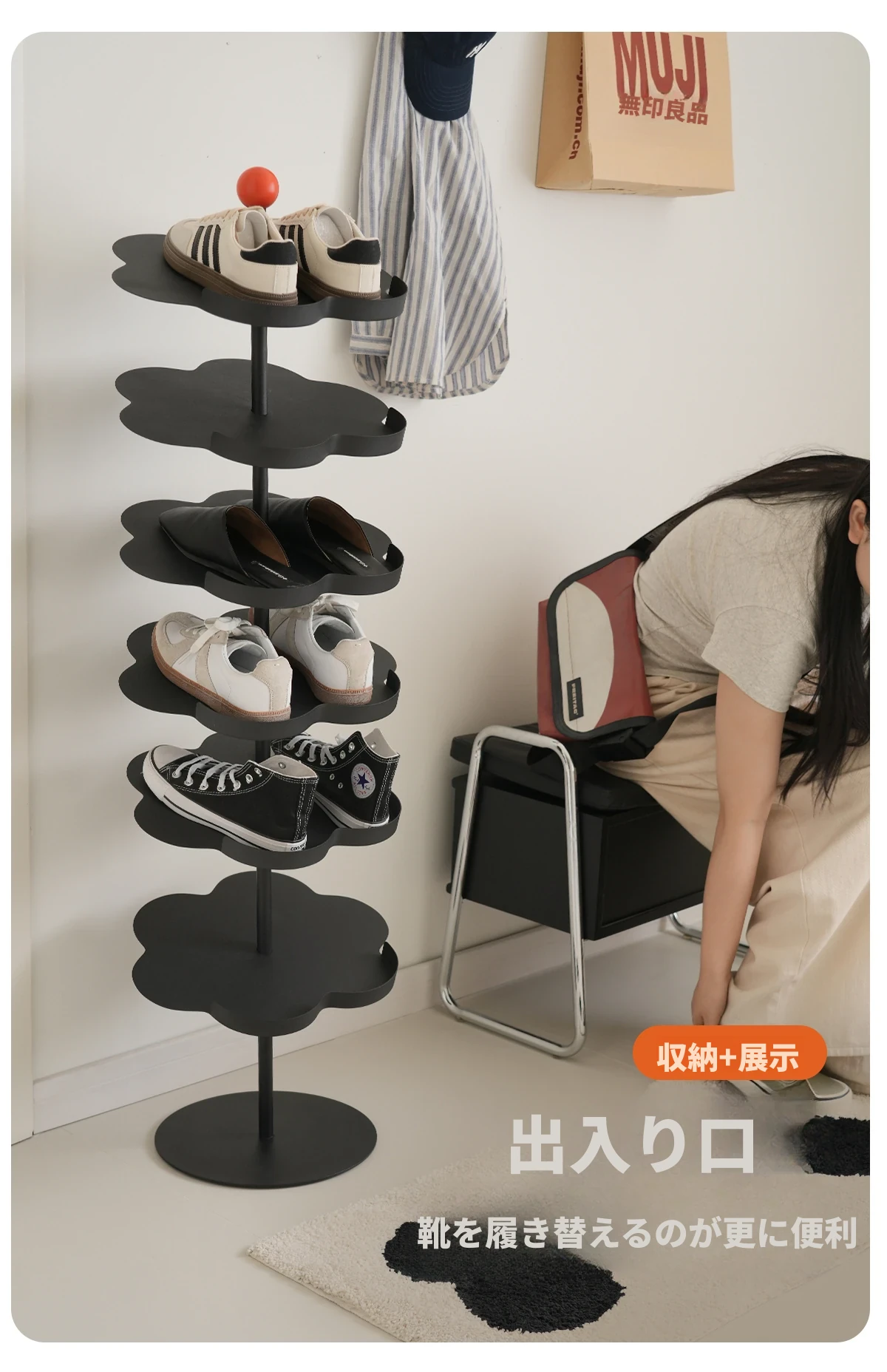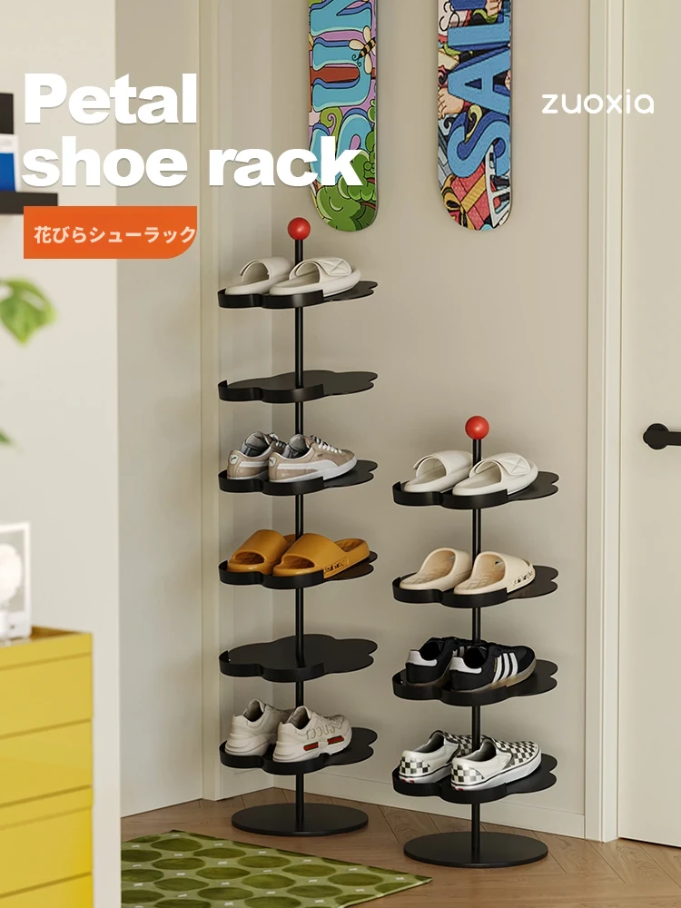 左下花弁型シューラック - 多層収納の家庭用玄関靴箱!スペースを節約し、室内をスッキリ整理!簡易設計で狭い場所にもぴったり!