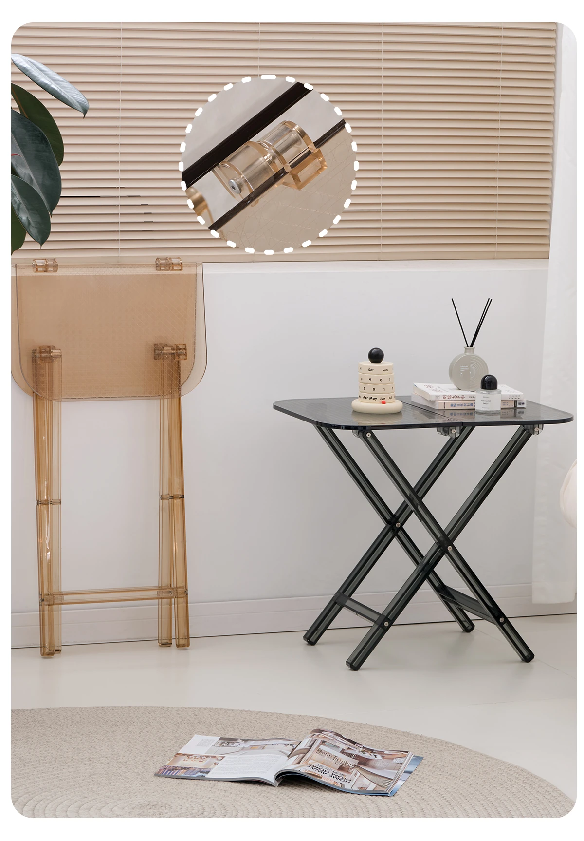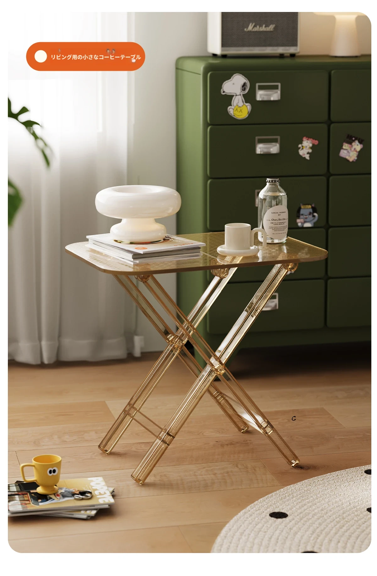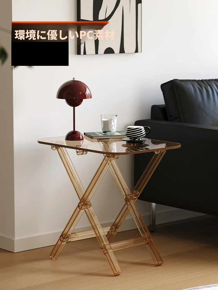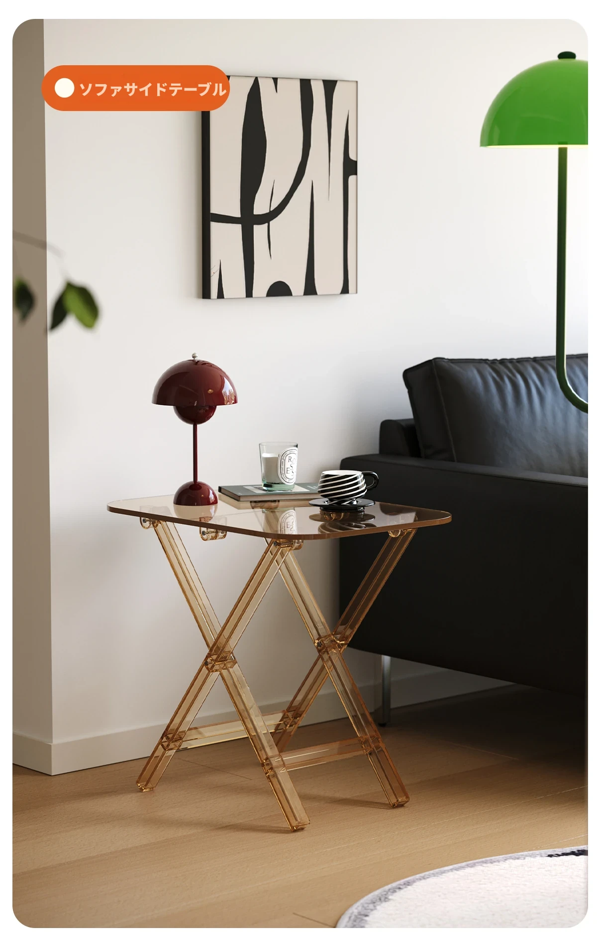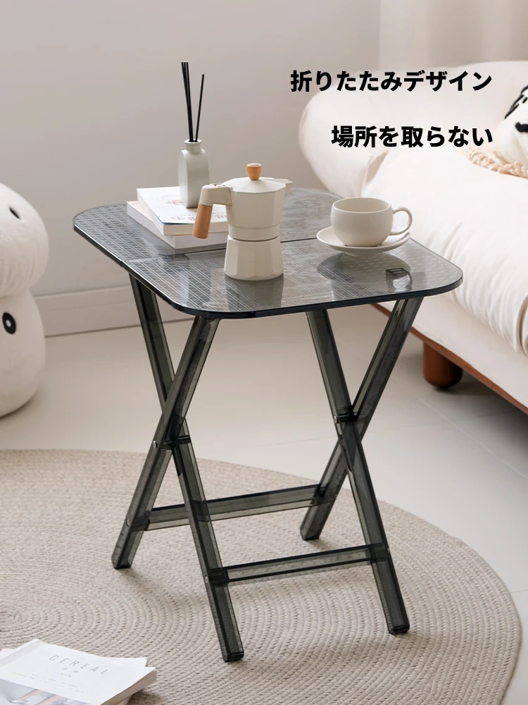 北欧スタイルの折りたたみサイドテーブル!透明デザインでおしゃれな家用ティーテーブル、小さなスペースにぴったりな陽台用のリラックスコーナーテーブル。限られたスペースでも、素敵な空間を演出します!