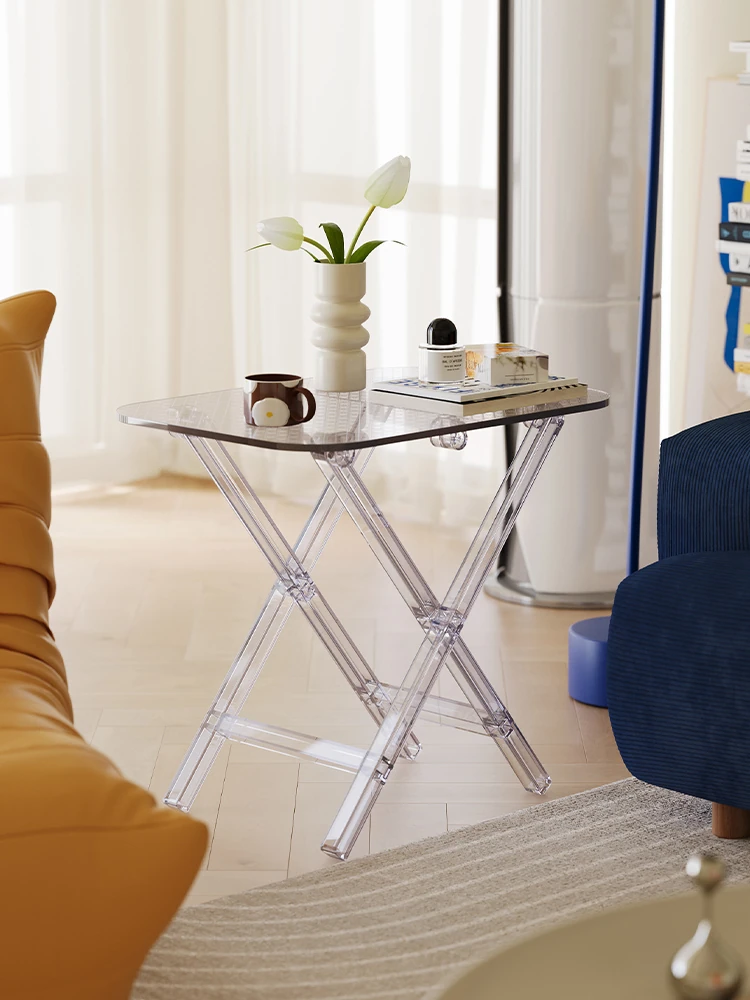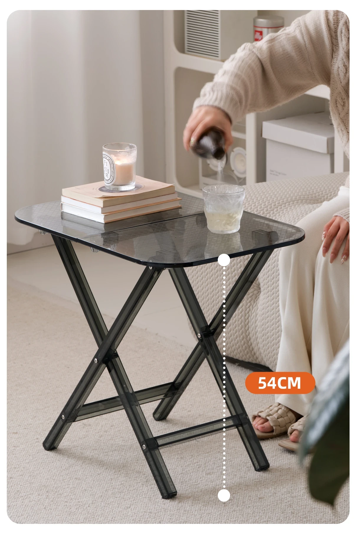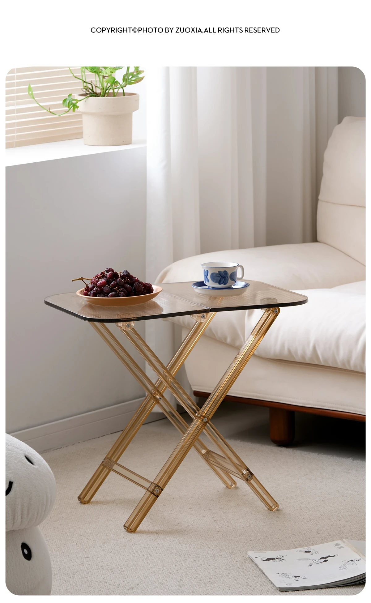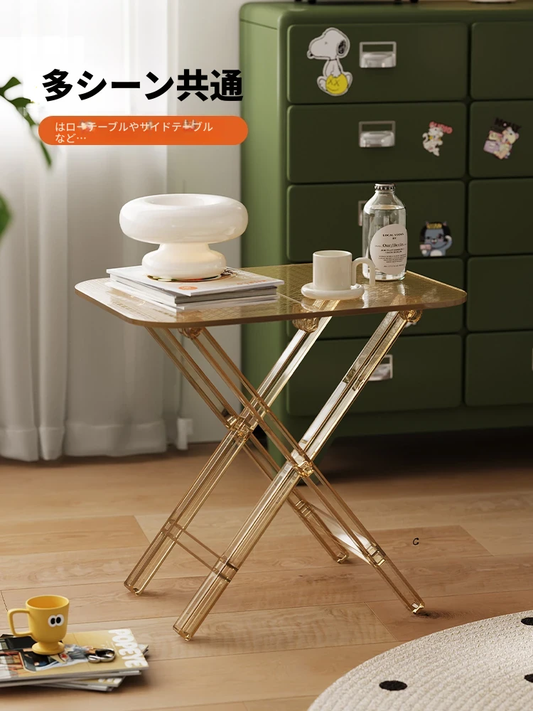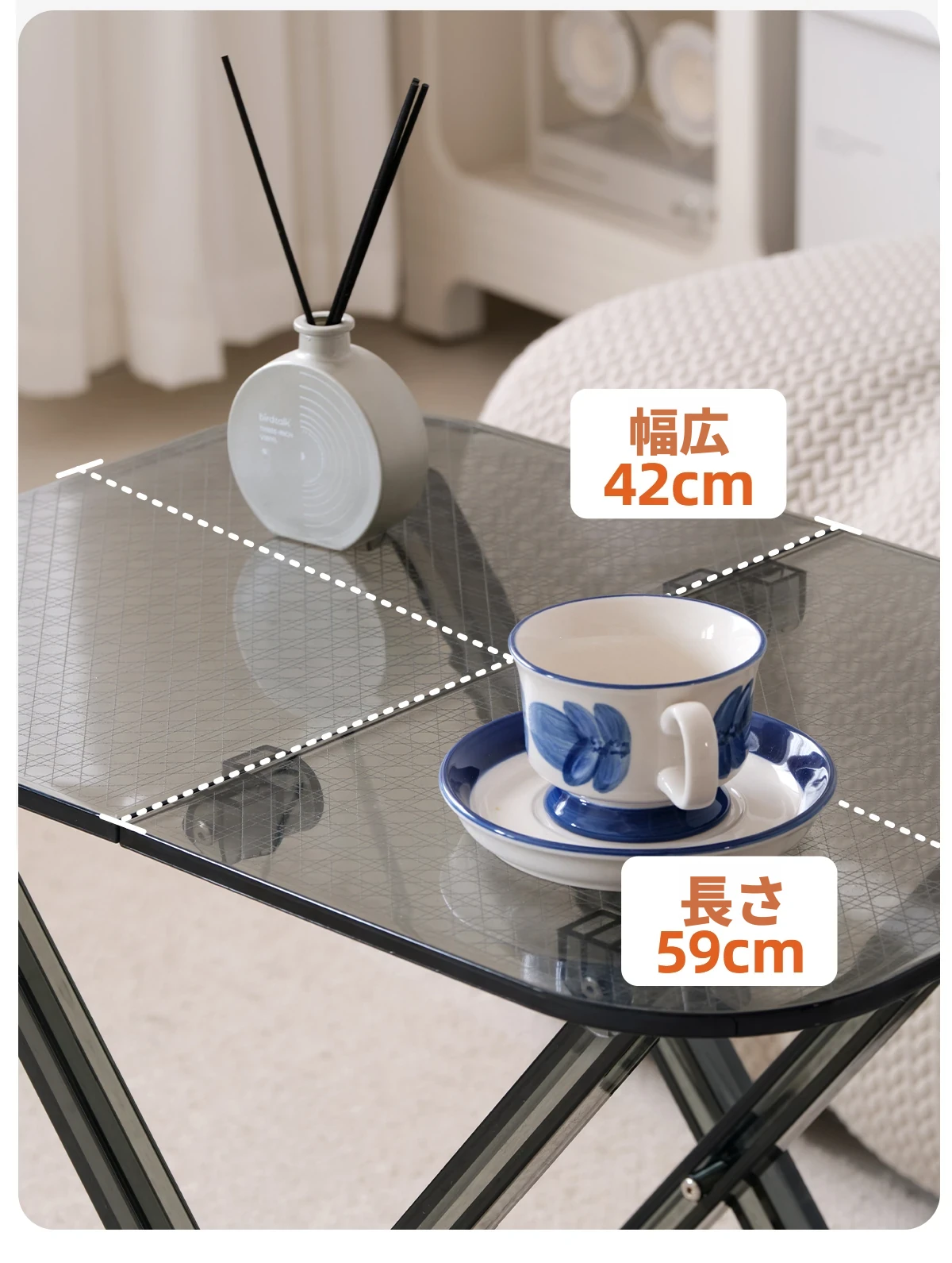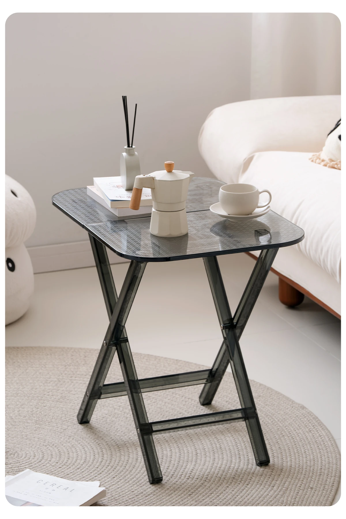 北欧スタイルの折りたたみサイドテーブル!透明デザインでおしゃれな家用ティーテーブル、小さなスペースにぴったりな陽台用のリラックスコーナーテーブル。限られたスペースでも、素敵な空間を演出します!