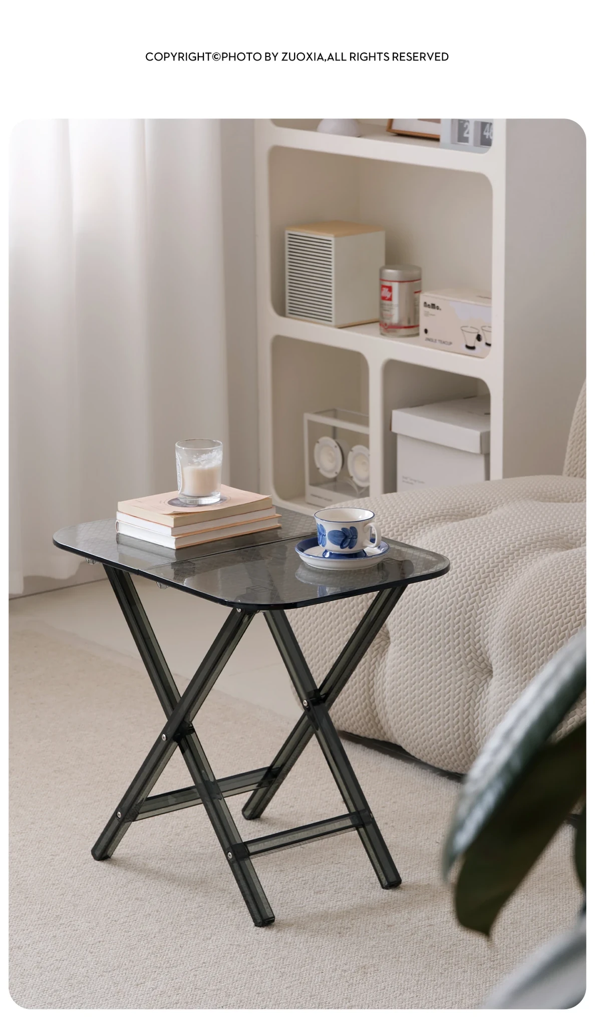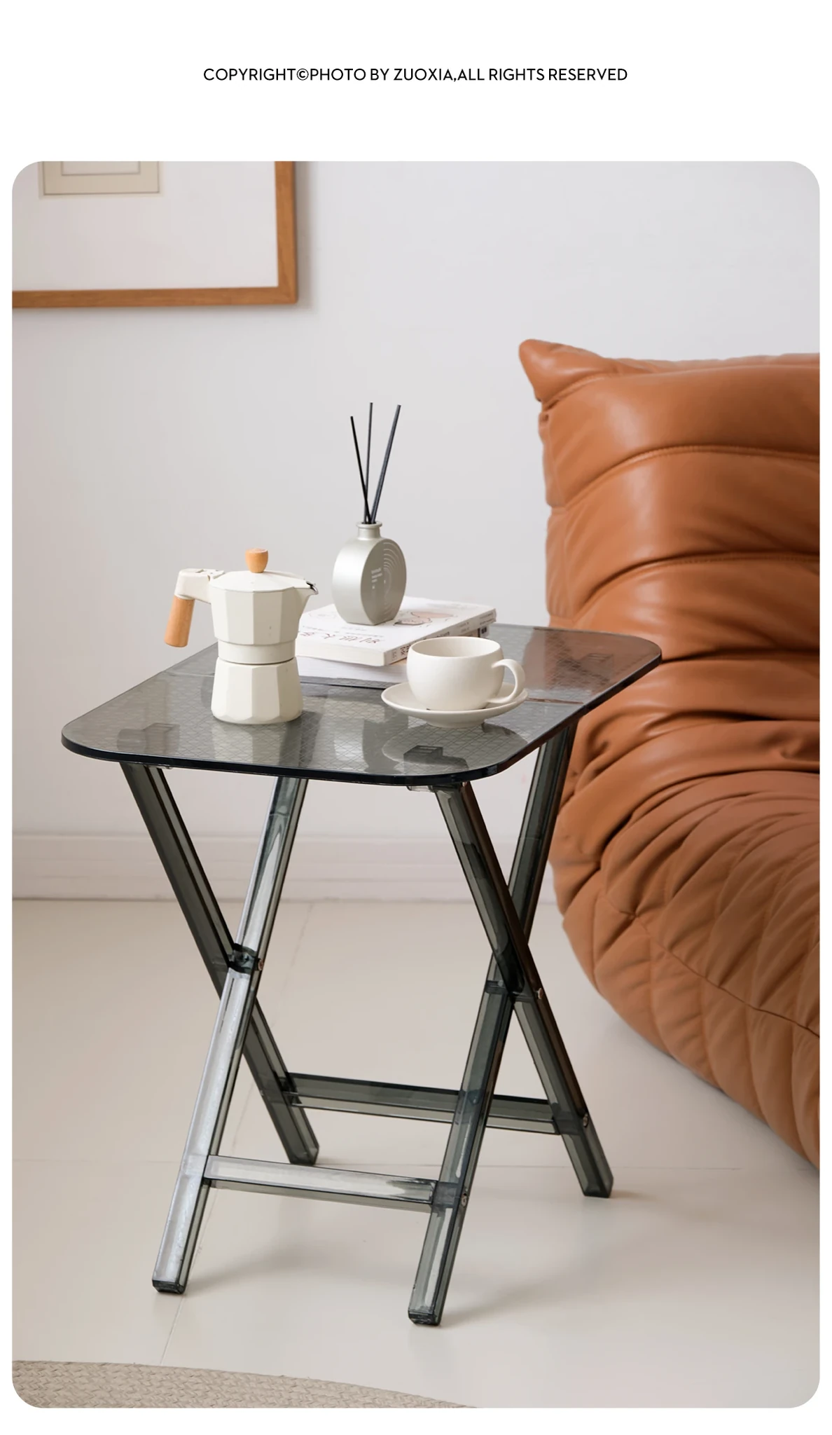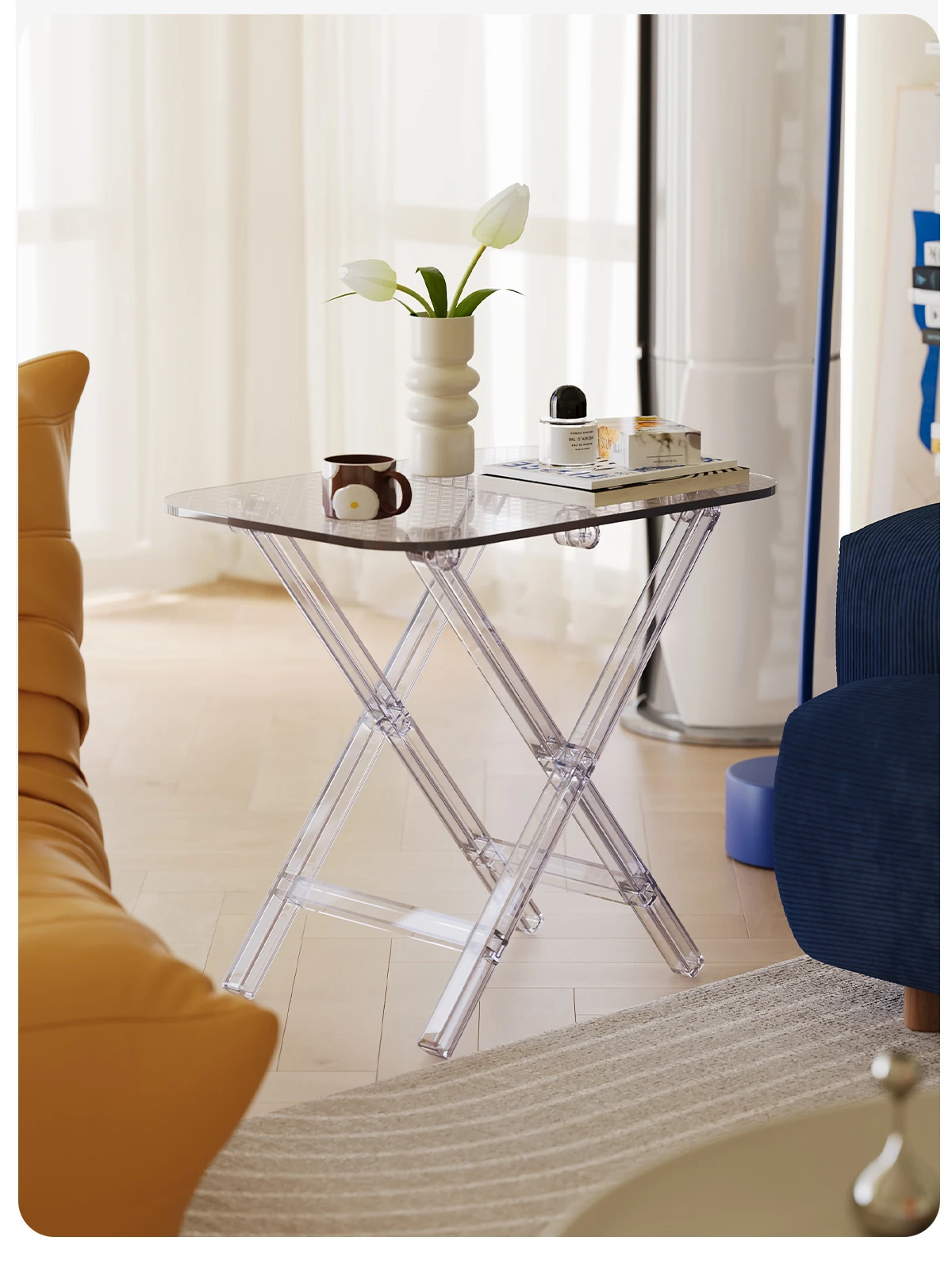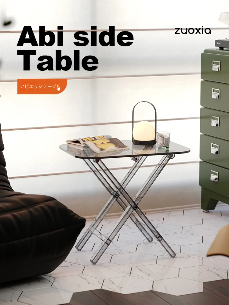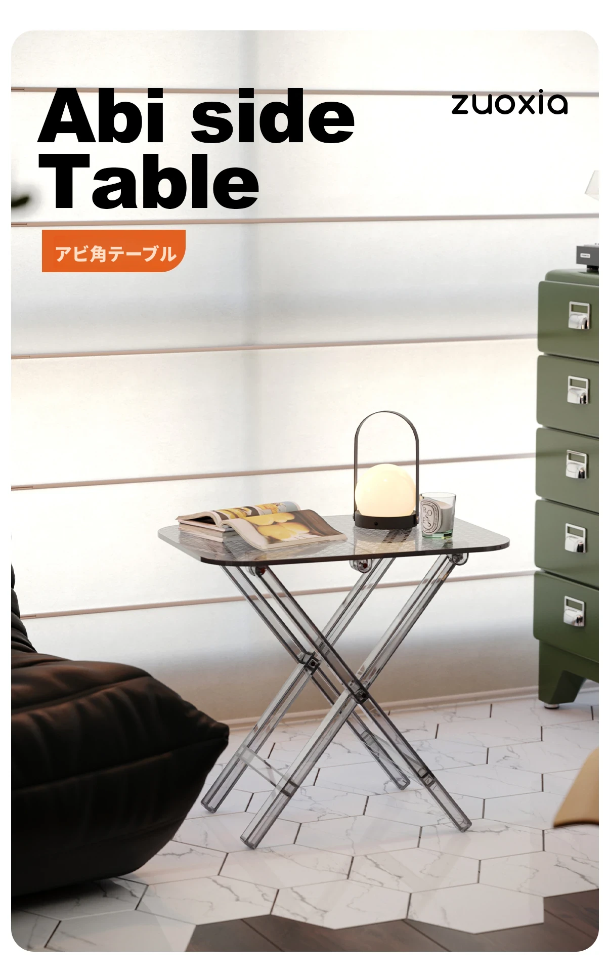 北欧スタイルの折りたたみサイドテーブル!透明デザインでおしゃれな家用ティーテーブル、小さなスペースにぴったりな陽台用のリラックスコーナーテーブル。限られたスペースでも、素敵な空間を演出します!