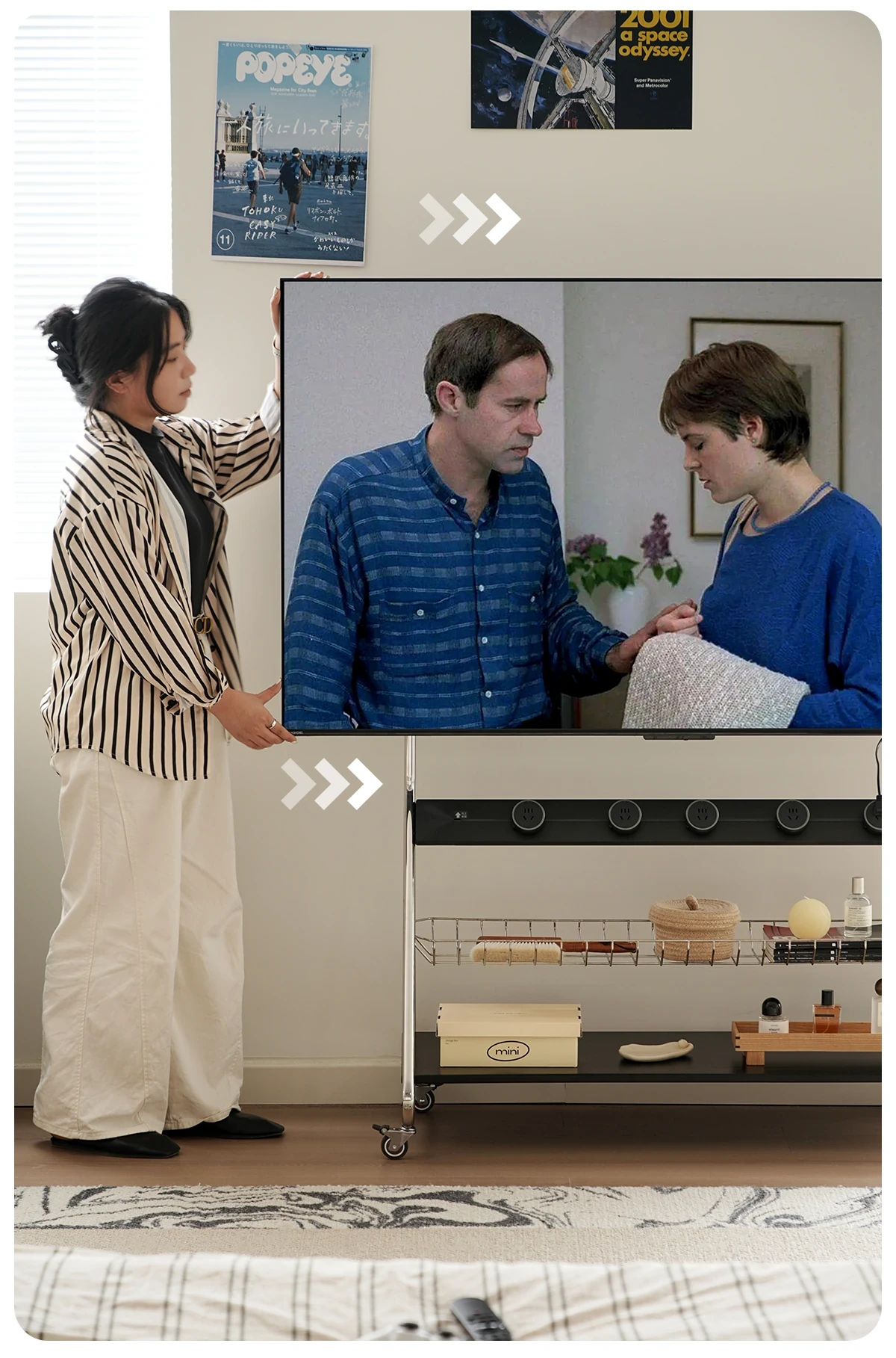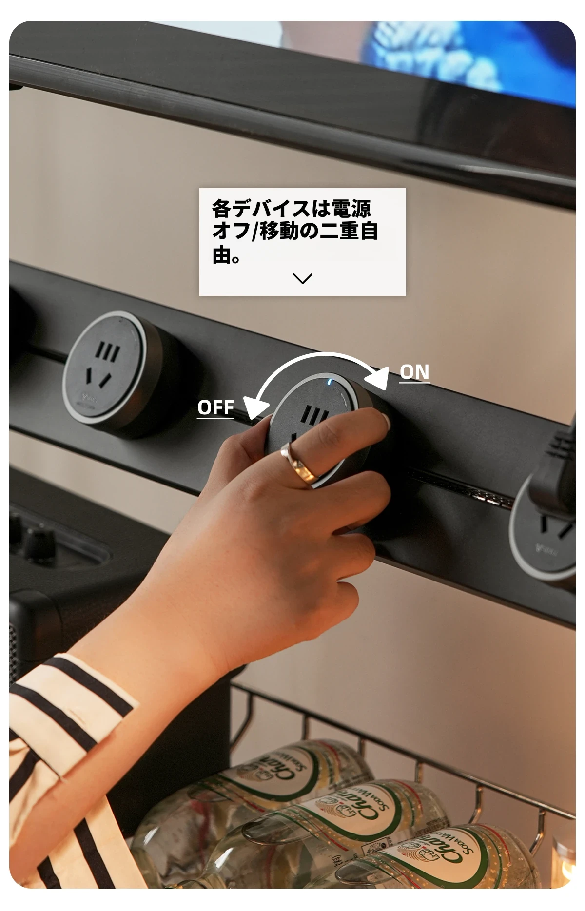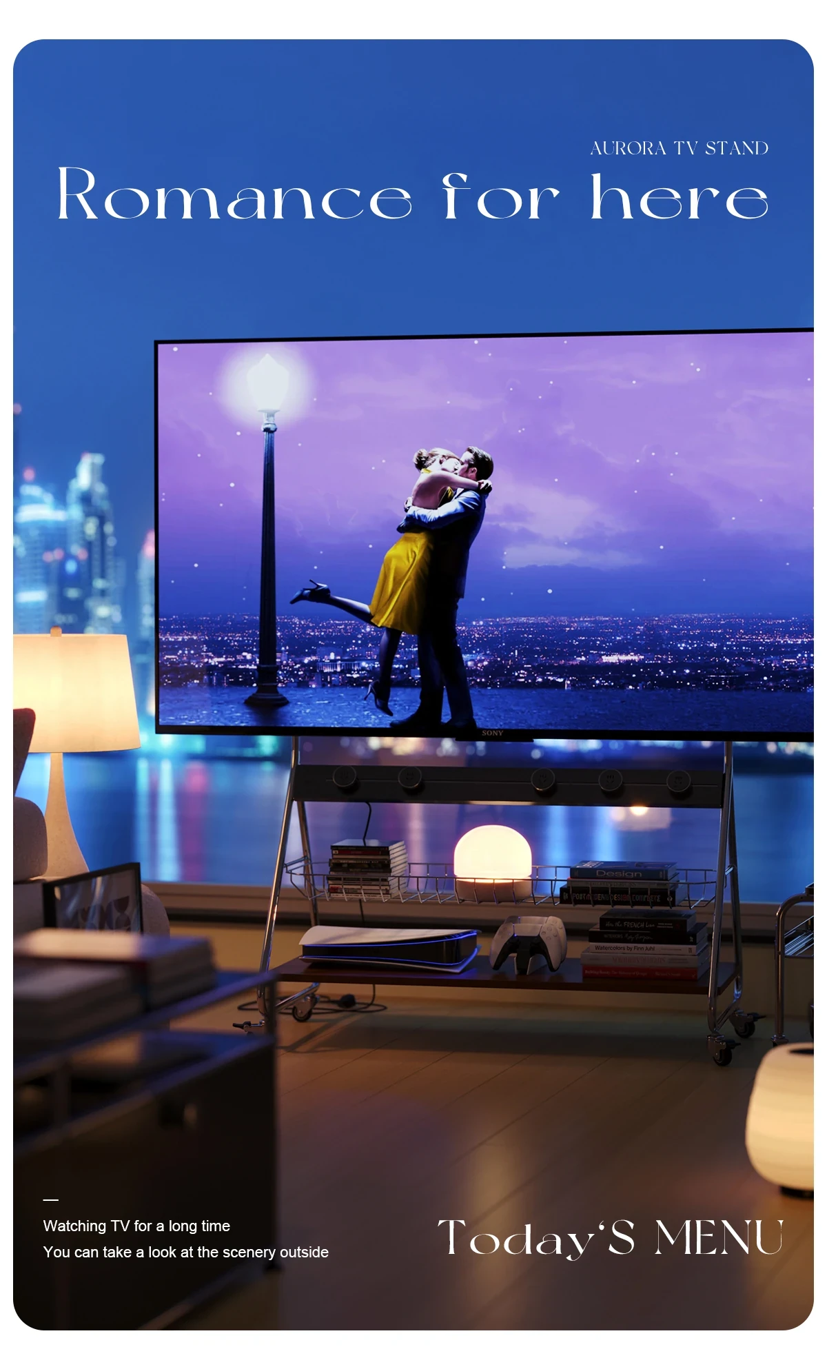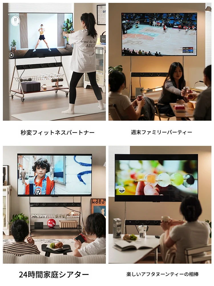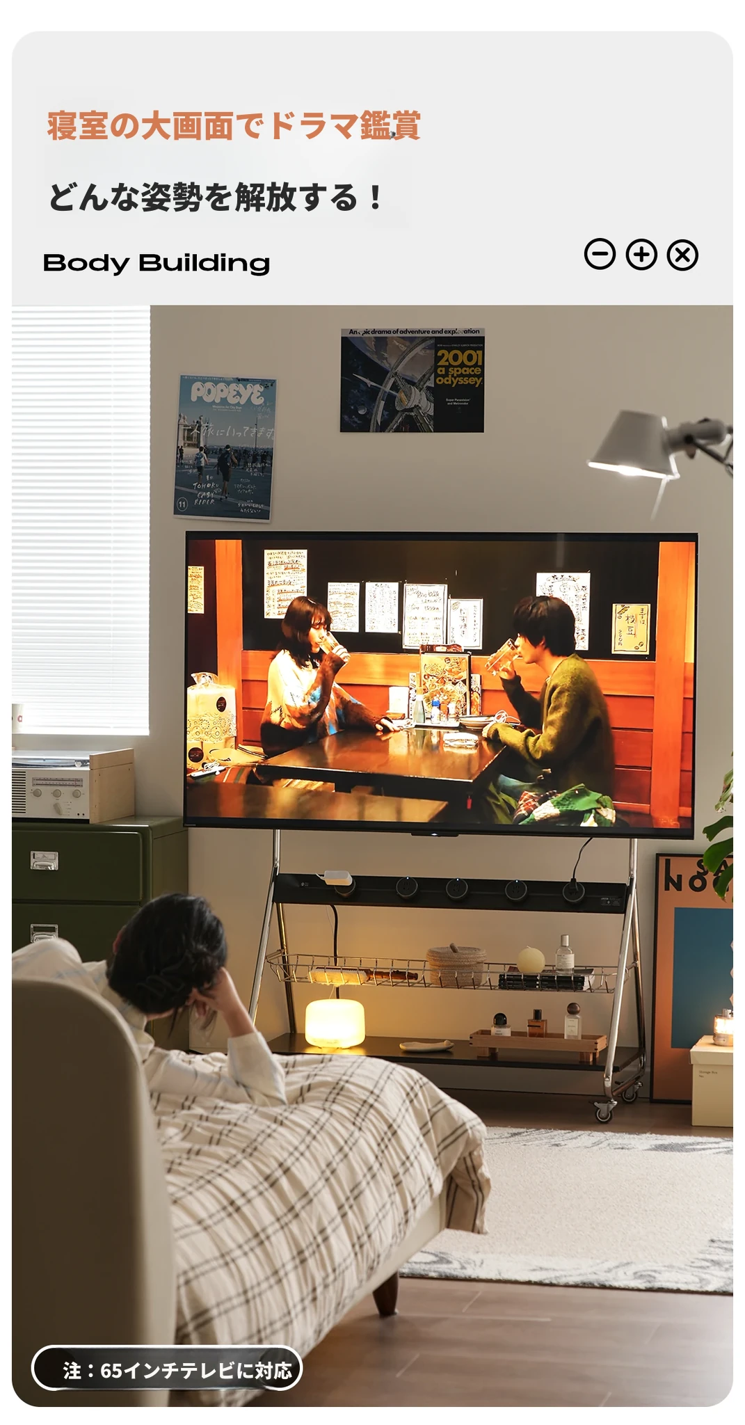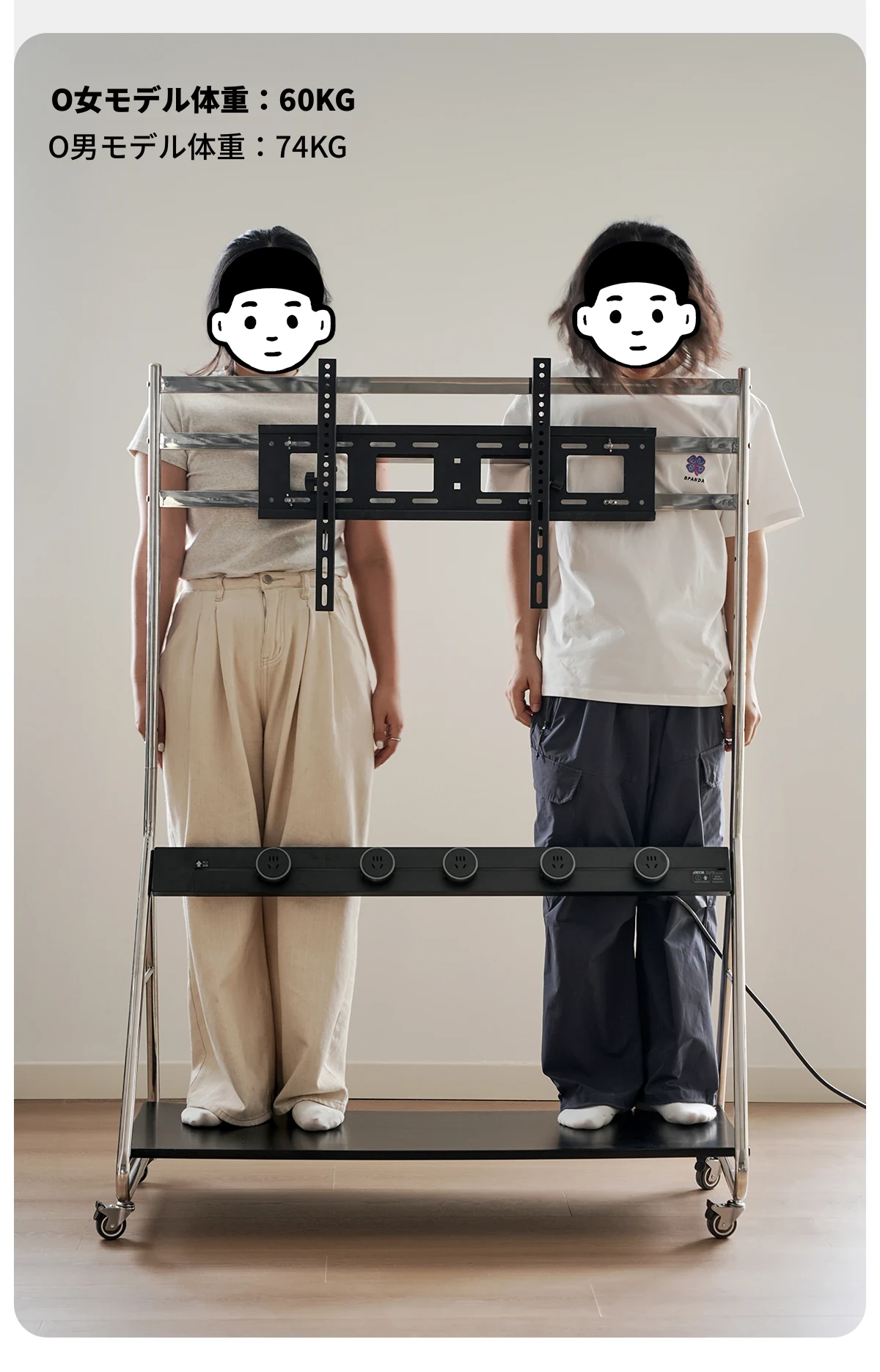 北欧風の可動式テレビスタンド - 小型リビングにもぴったり!電源トラック付きで便利なテレビキャビネット&キャスター付き。おしゃれなデザインで、快適な視聴体験を実現します!