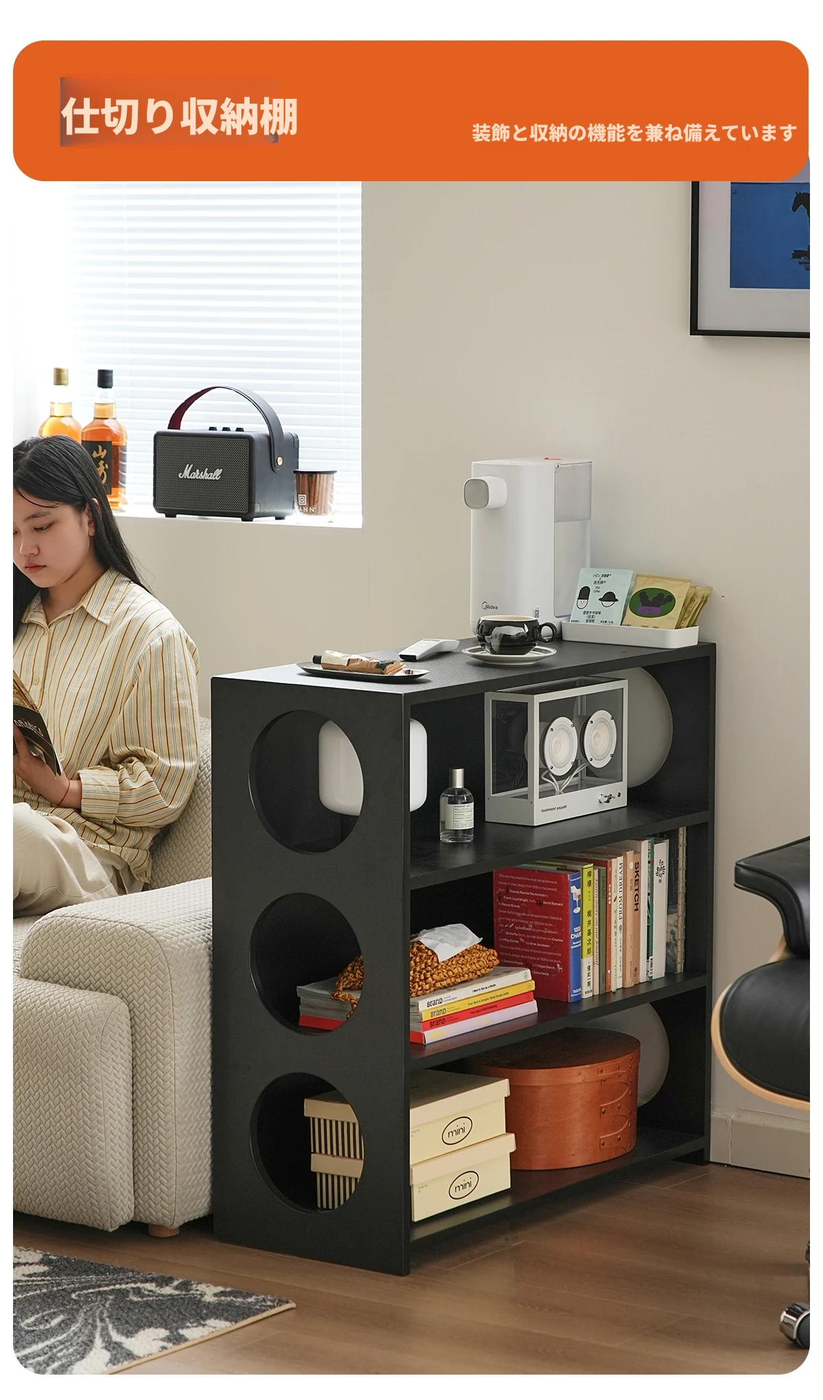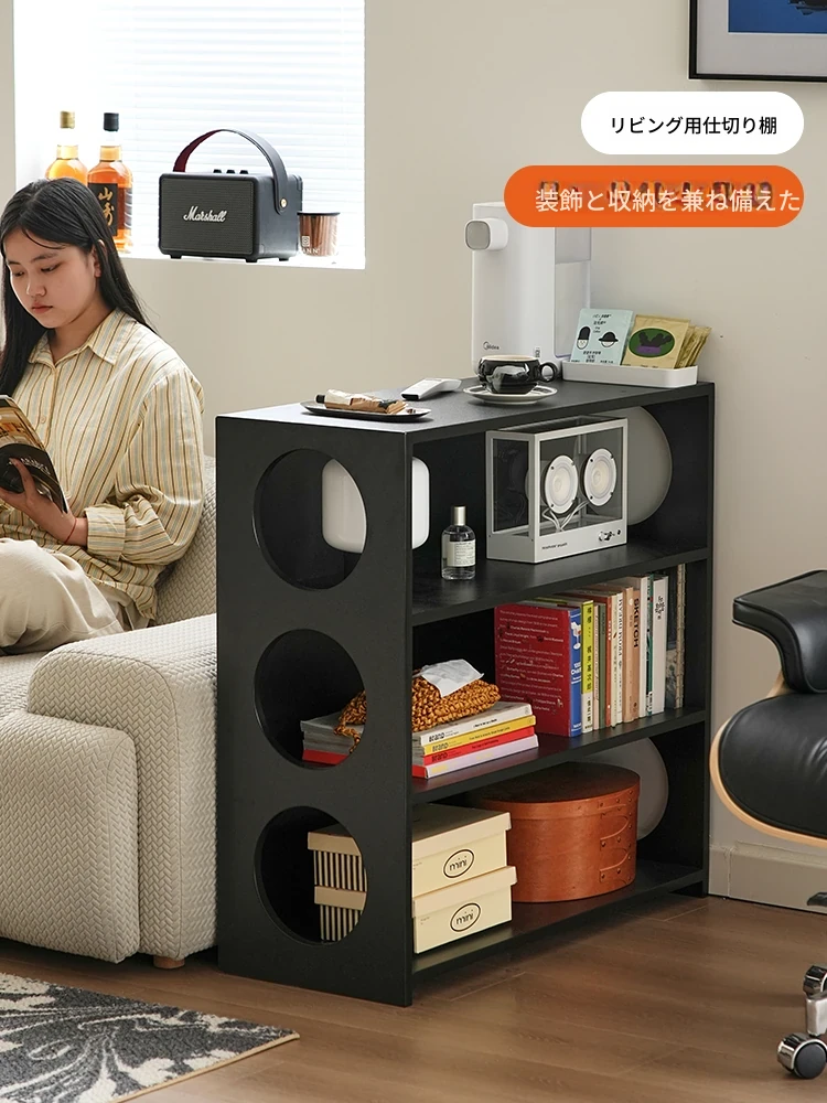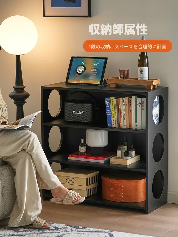 北欧風のスタイリッシュな収納ラック|小型リビングに最適なモダンデザイン|多層の創造的なフロアシェルフで、スッキリ整理整頓!