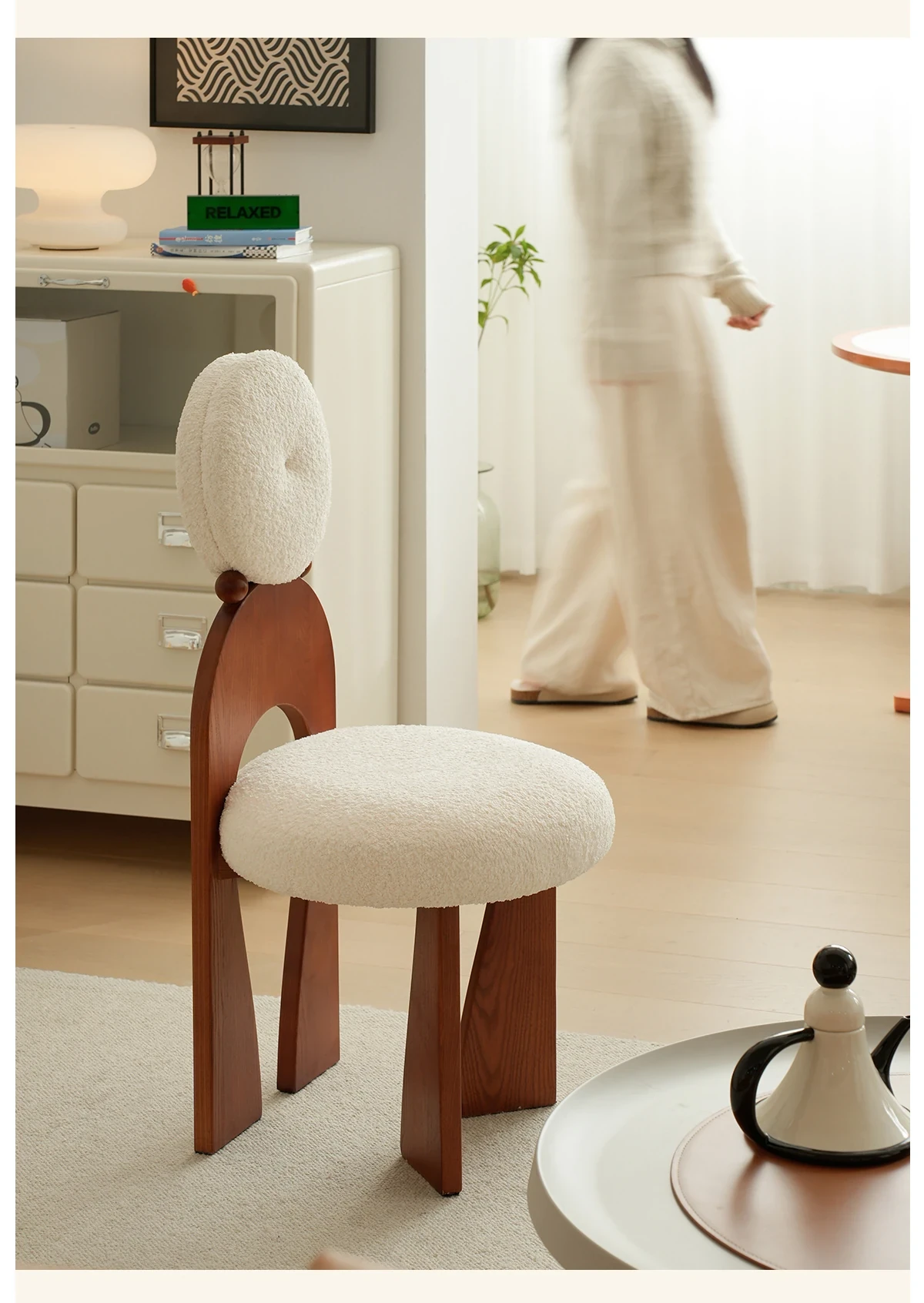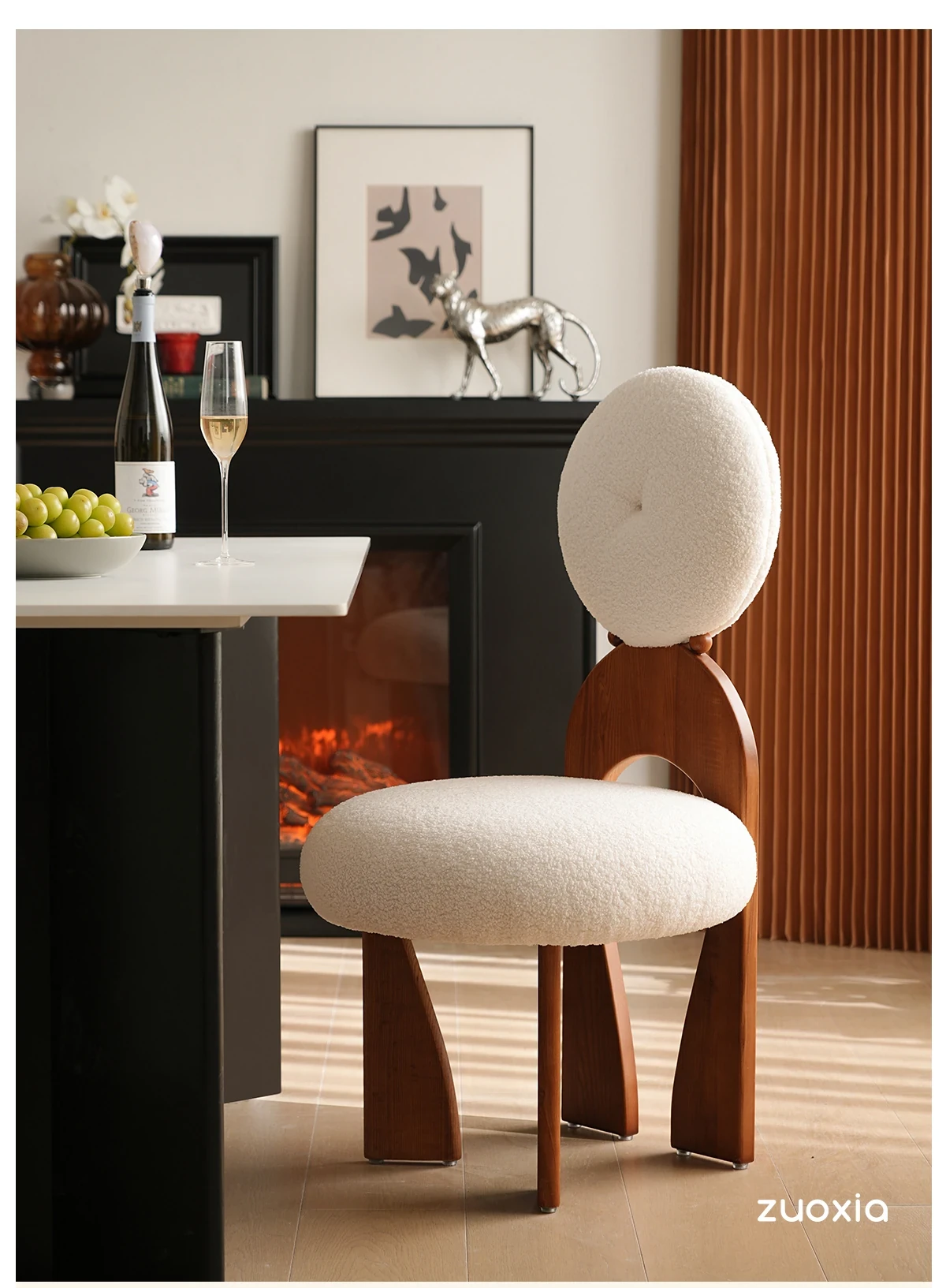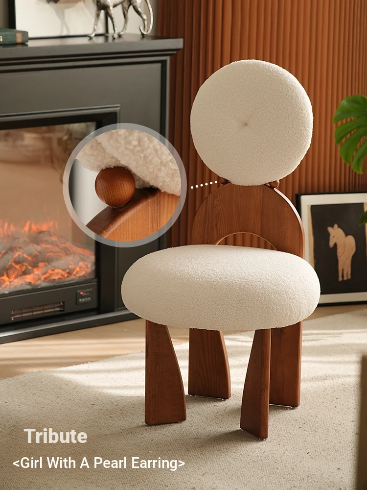 Nordic Vintage Solid Wood Dining Chair with Soft Upholstered Backrest - Stylish Designer Chair for Home, Bedroom, and Makeup Use