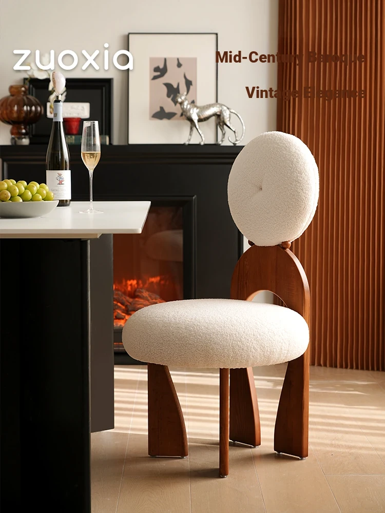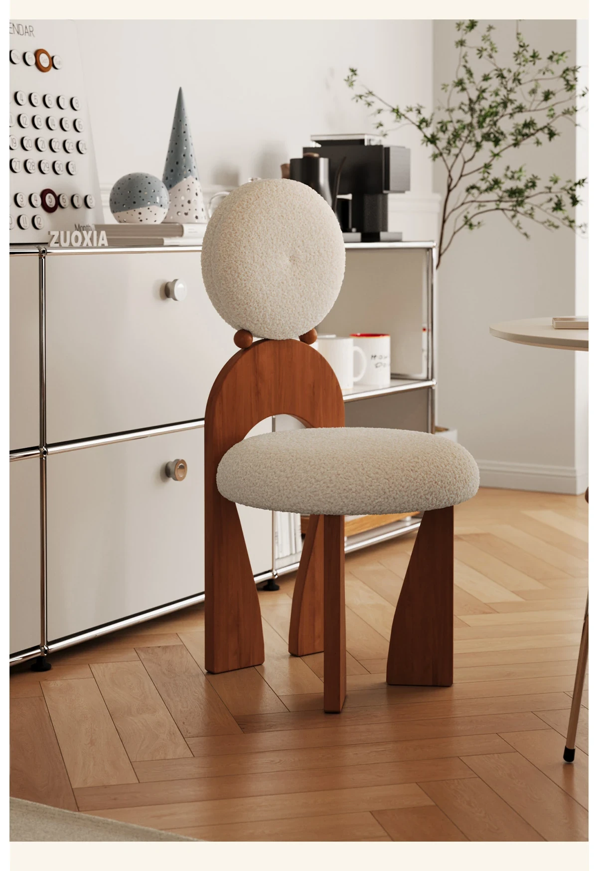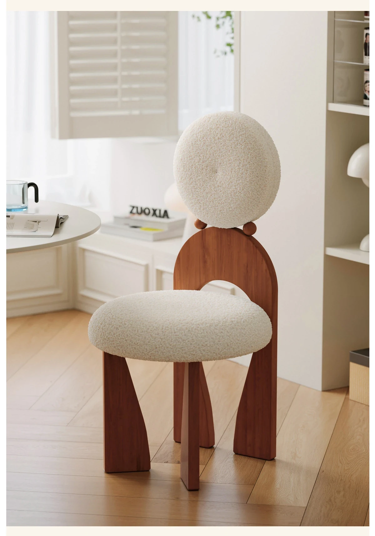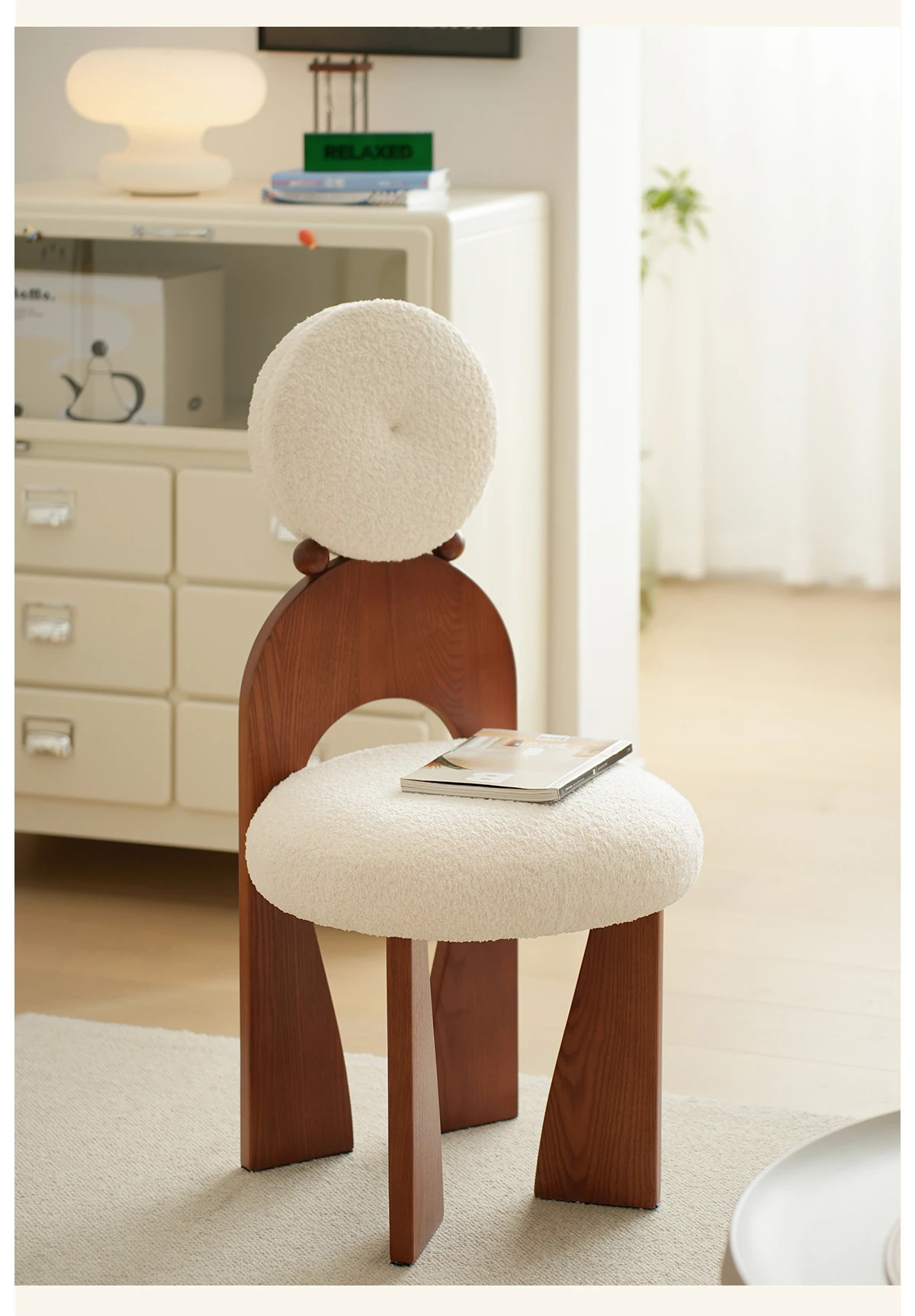 Nordic Vintage Solid Wood Dining Chair with Soft Upholstered Backrest - Stylish Designer Chair for Home, Bedroom, and Makeup Use