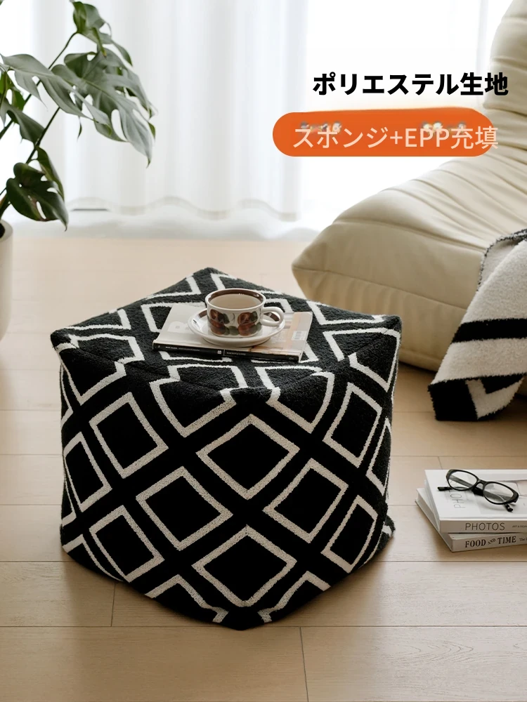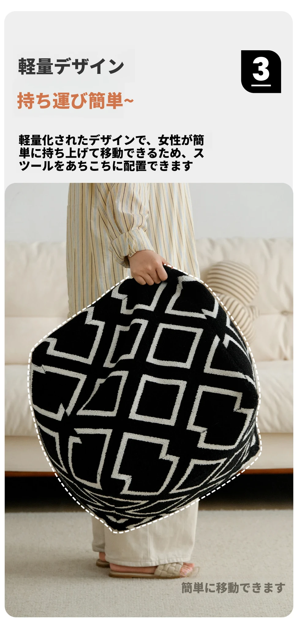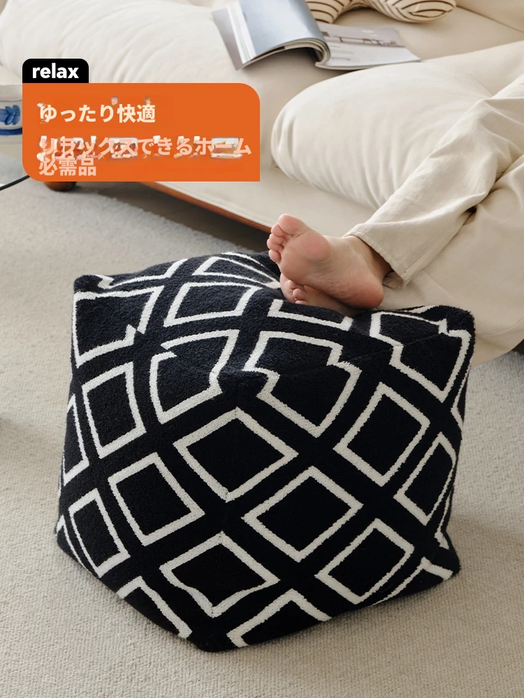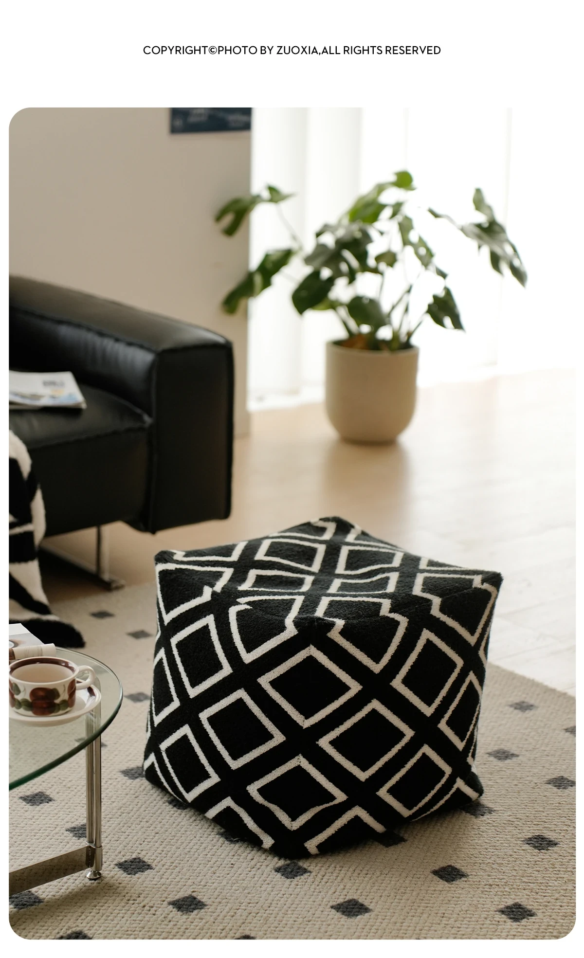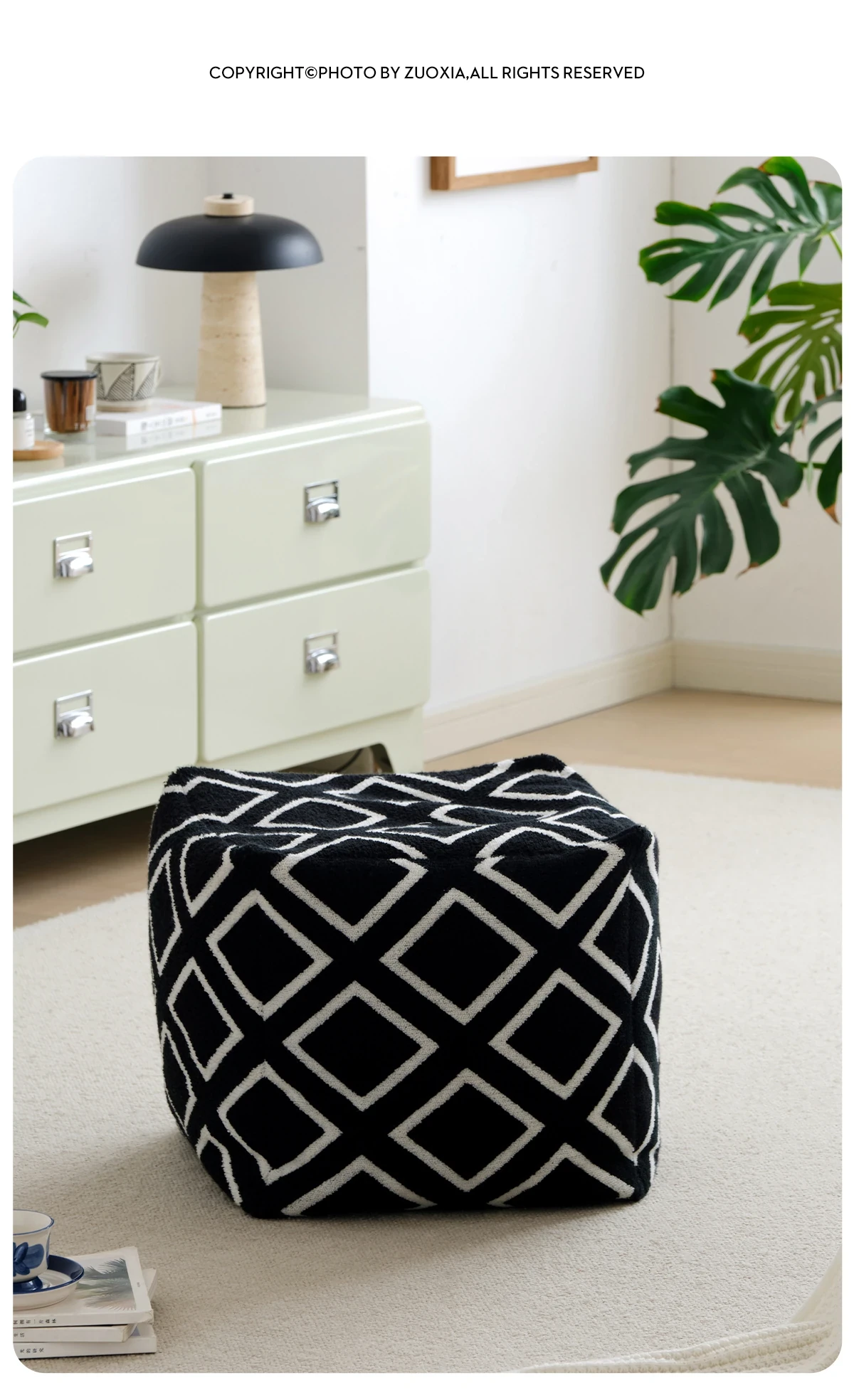 北欧スタイルのレトロな左下セリーヌスツール - ブラック&ホワイト、洗えるデザインでお手入れ簡単!シンプルなメイクスツールや靴を履く際の便利なアイテムとして、あなたのリビングをおしゃれに演出します。