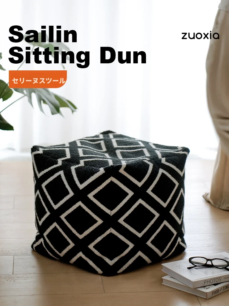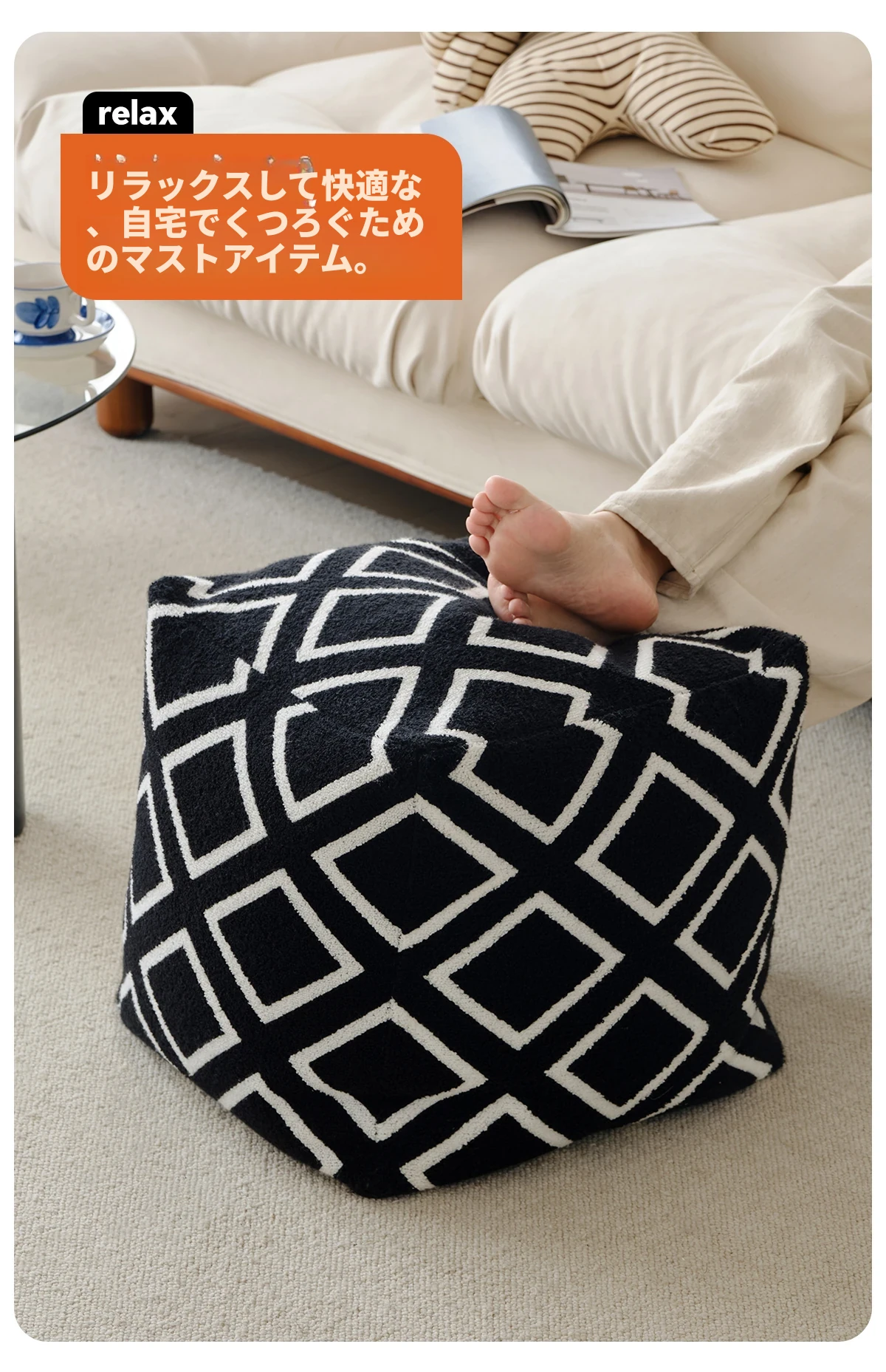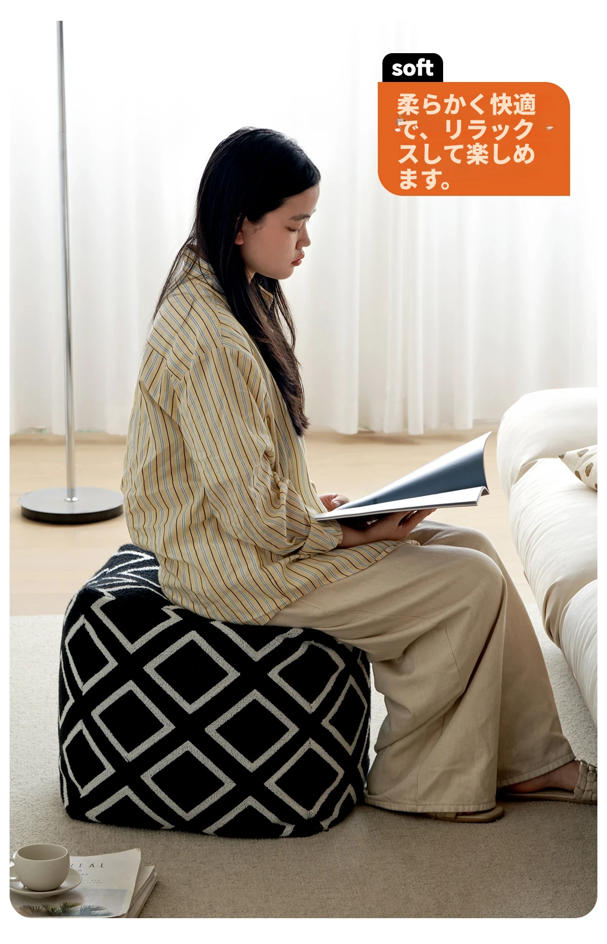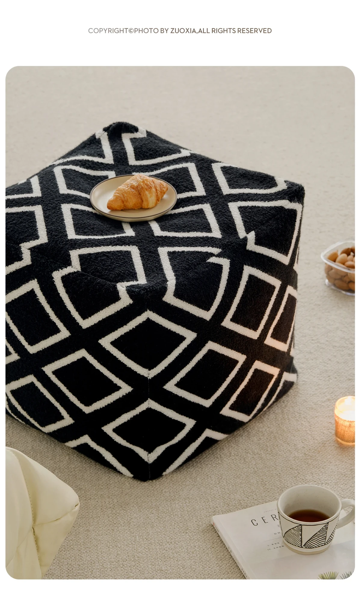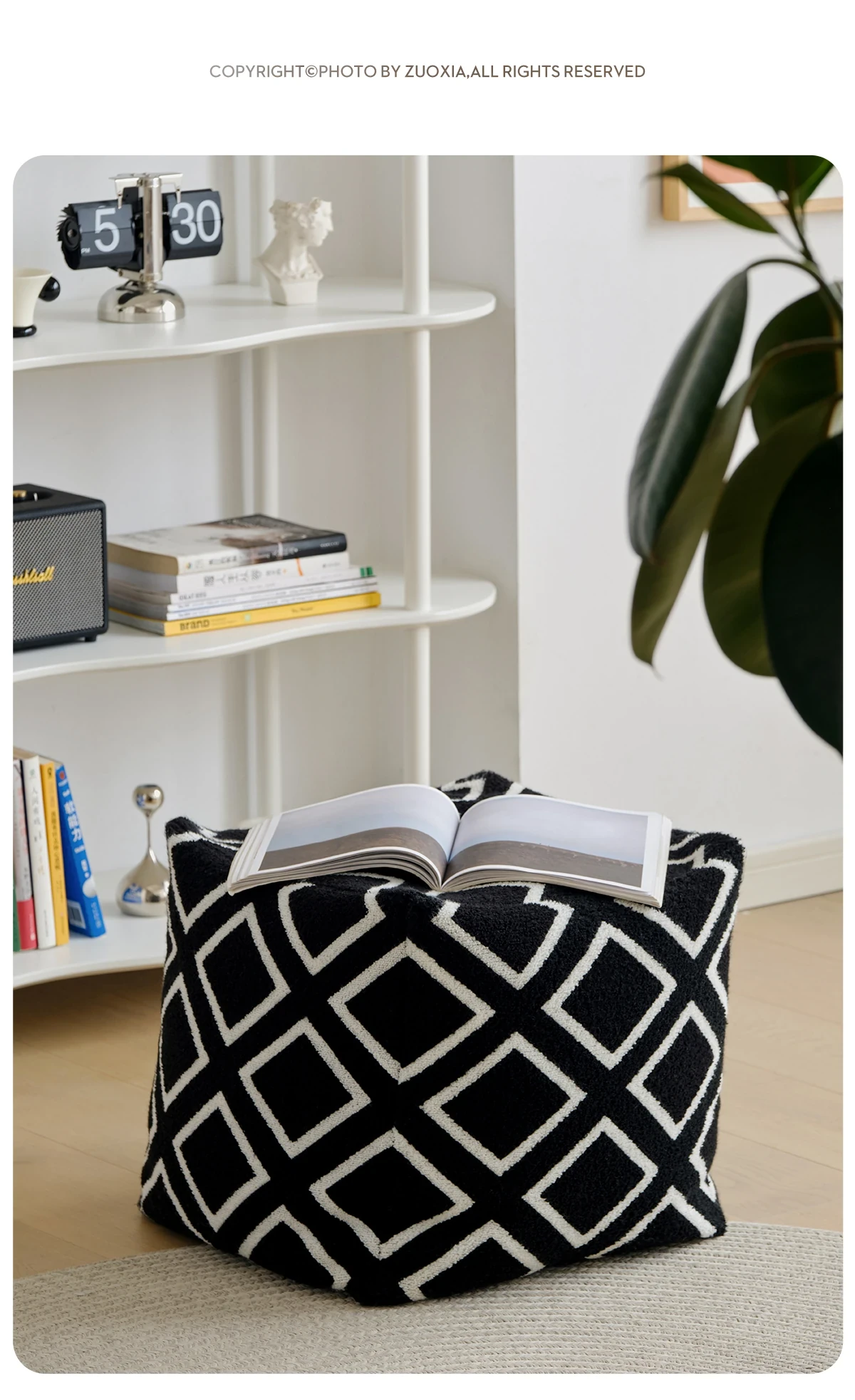 北欧スタイルのレトロな左下セリーヌスツール - ブラック&ホワイト、洗えるデザインでお手入れ簡単!シンプルなメイクスツールや靴を履く際の便利なアイテムとして、あなたのリビングをおしゃれに演出します。