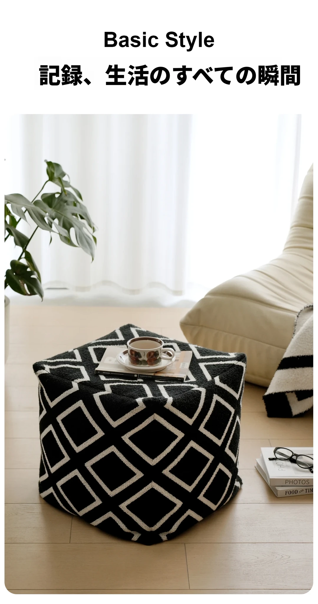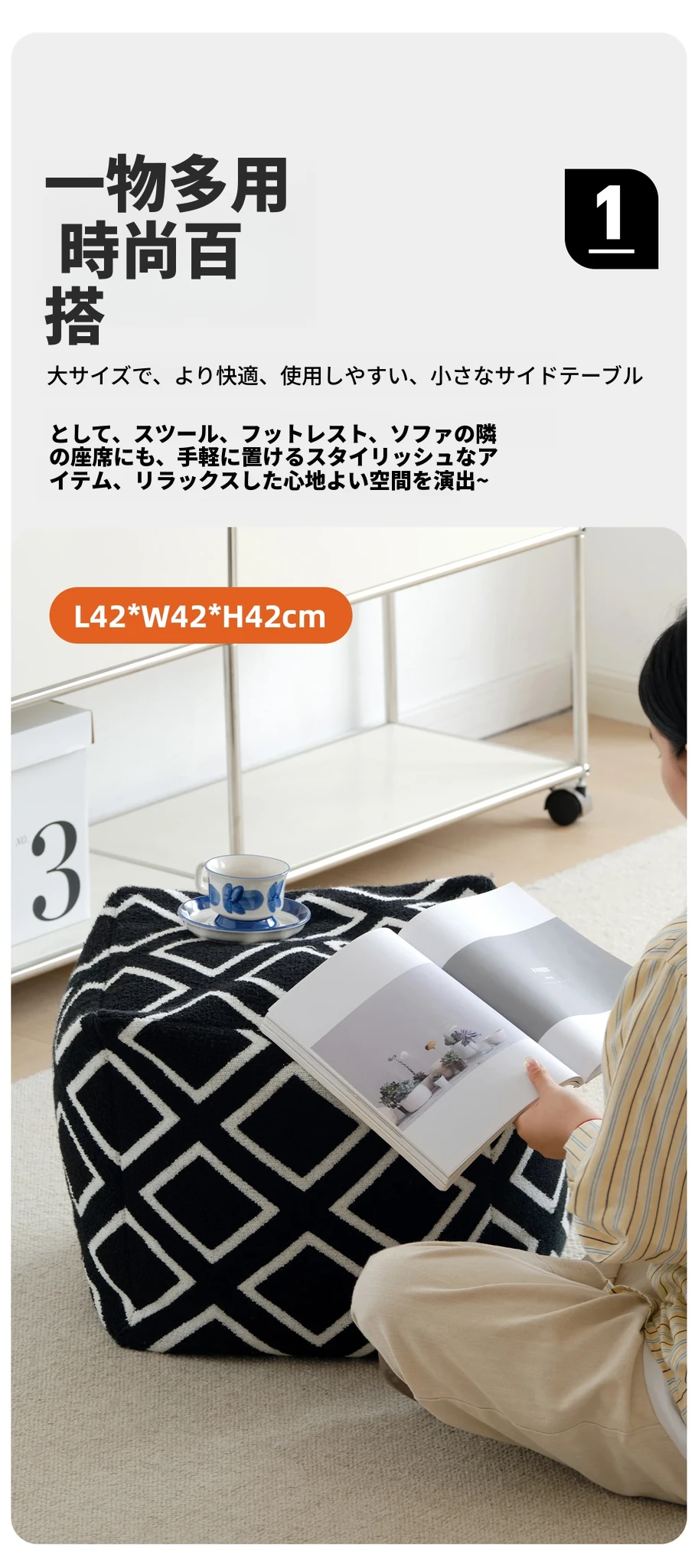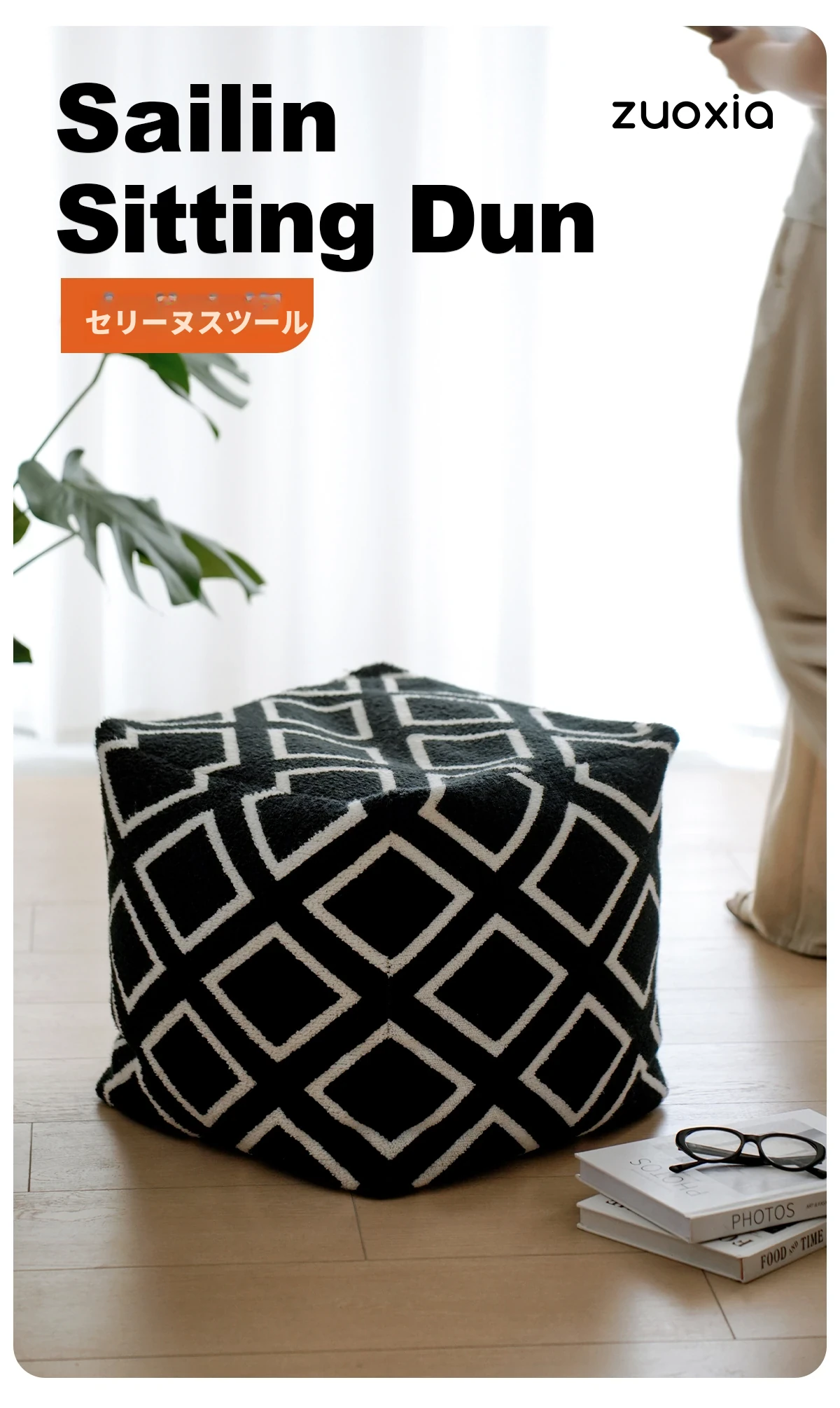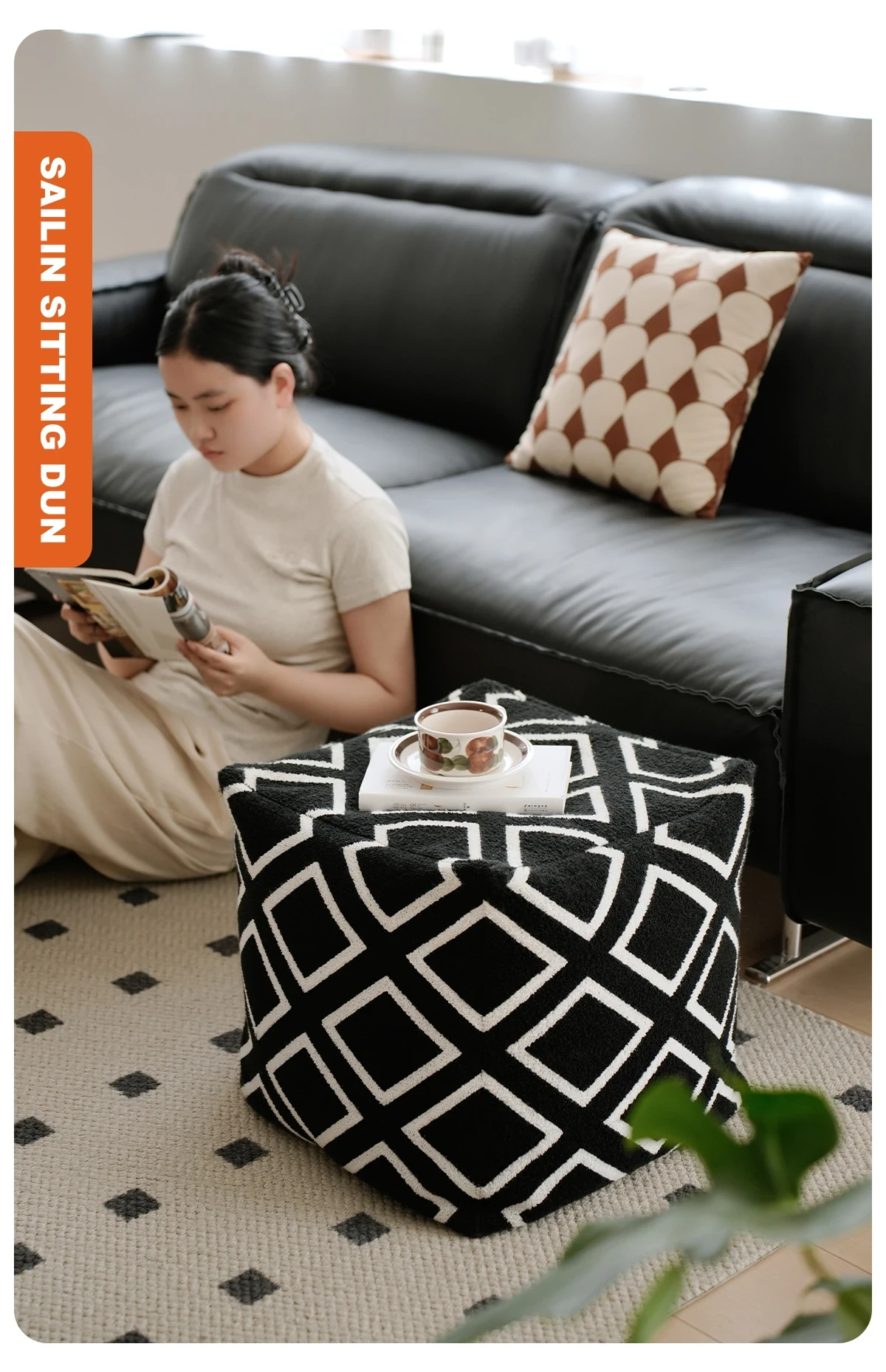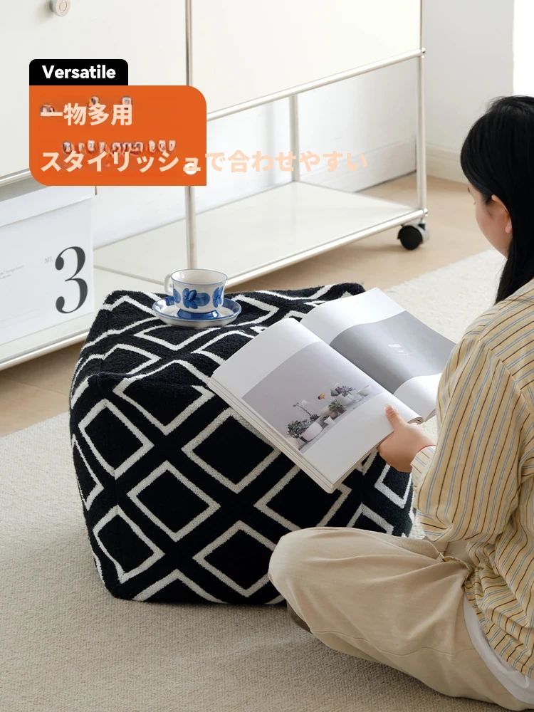 北欧スタイルのレトロな左下セリーヌスツール - ブラック&ホワイト、洗えるデザインでお手入れ簡単!シンプルなメイクスツールや靴を履く際の便利なアイテムとして、あなたのリビングをおしゃれに演出します。