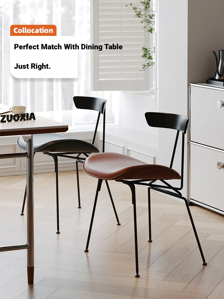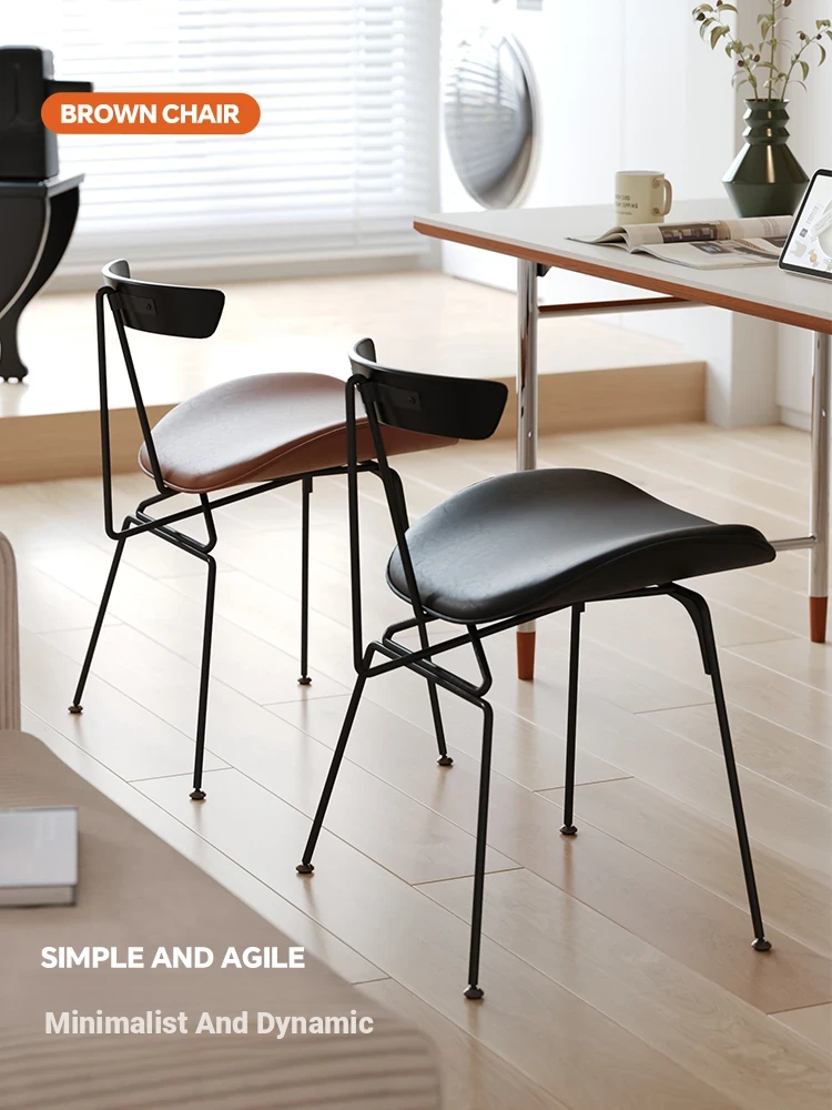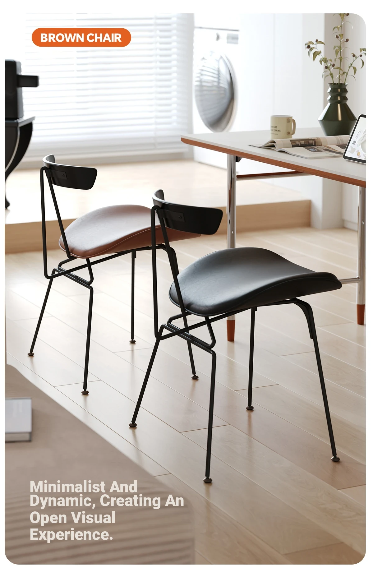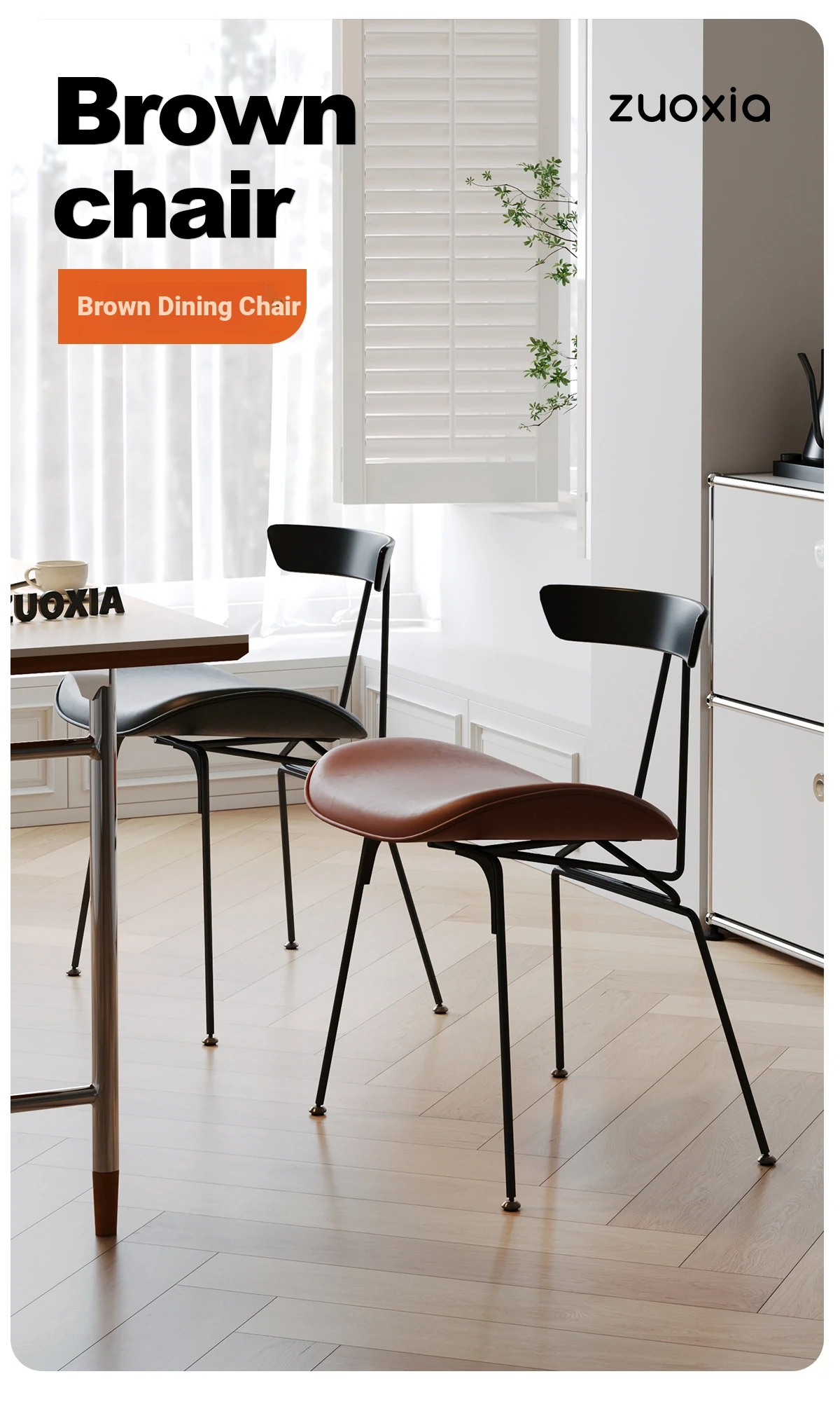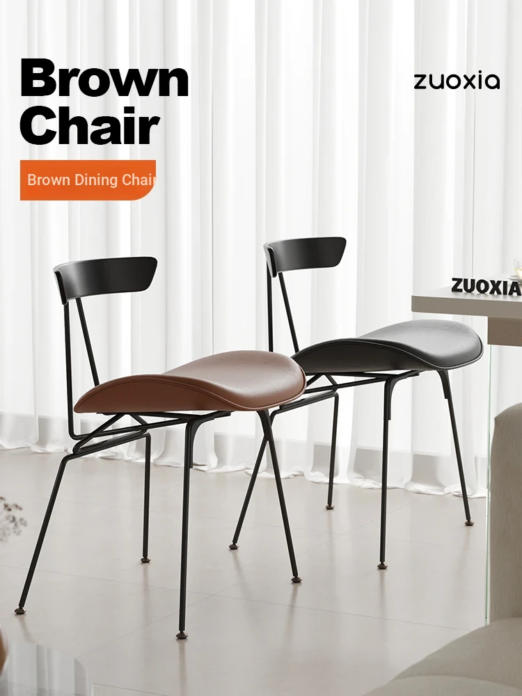 Vintage Industrial Style Brown Dining Chair with Iron Frame - Designer-Inspired Mid-Century Luxe Accent Chair for Home Dining Room, Perfect for Relaxation and Style