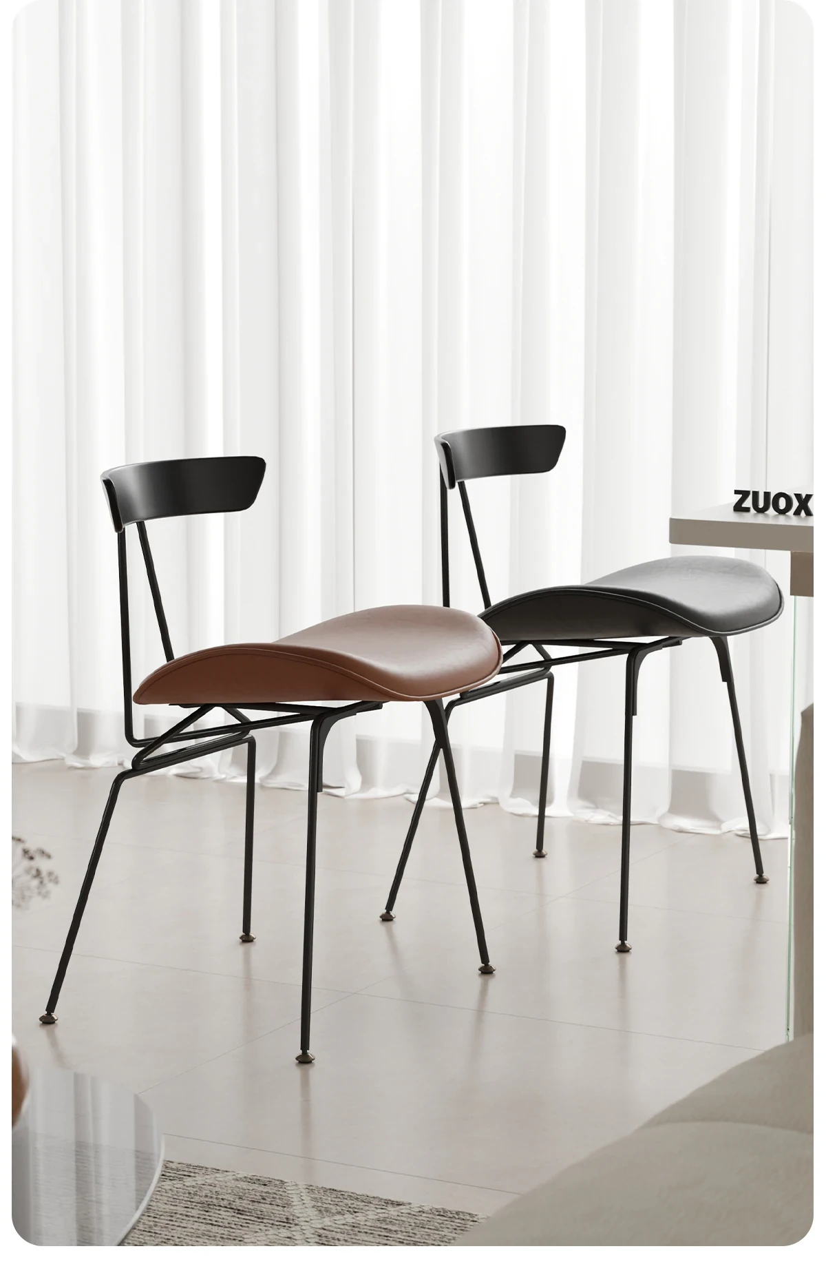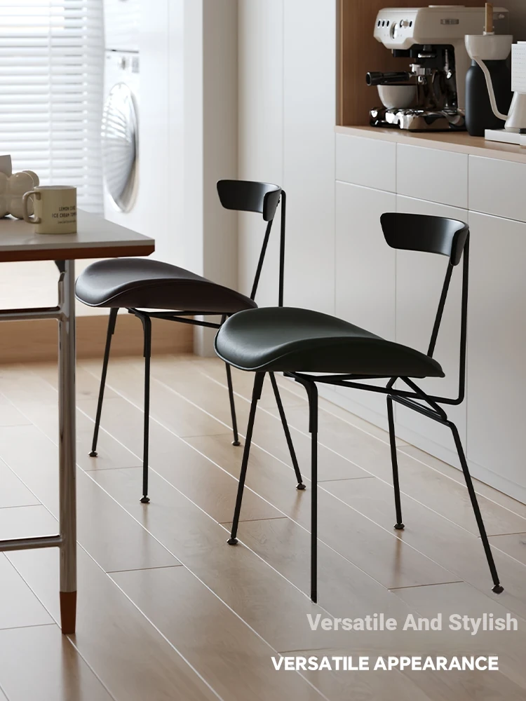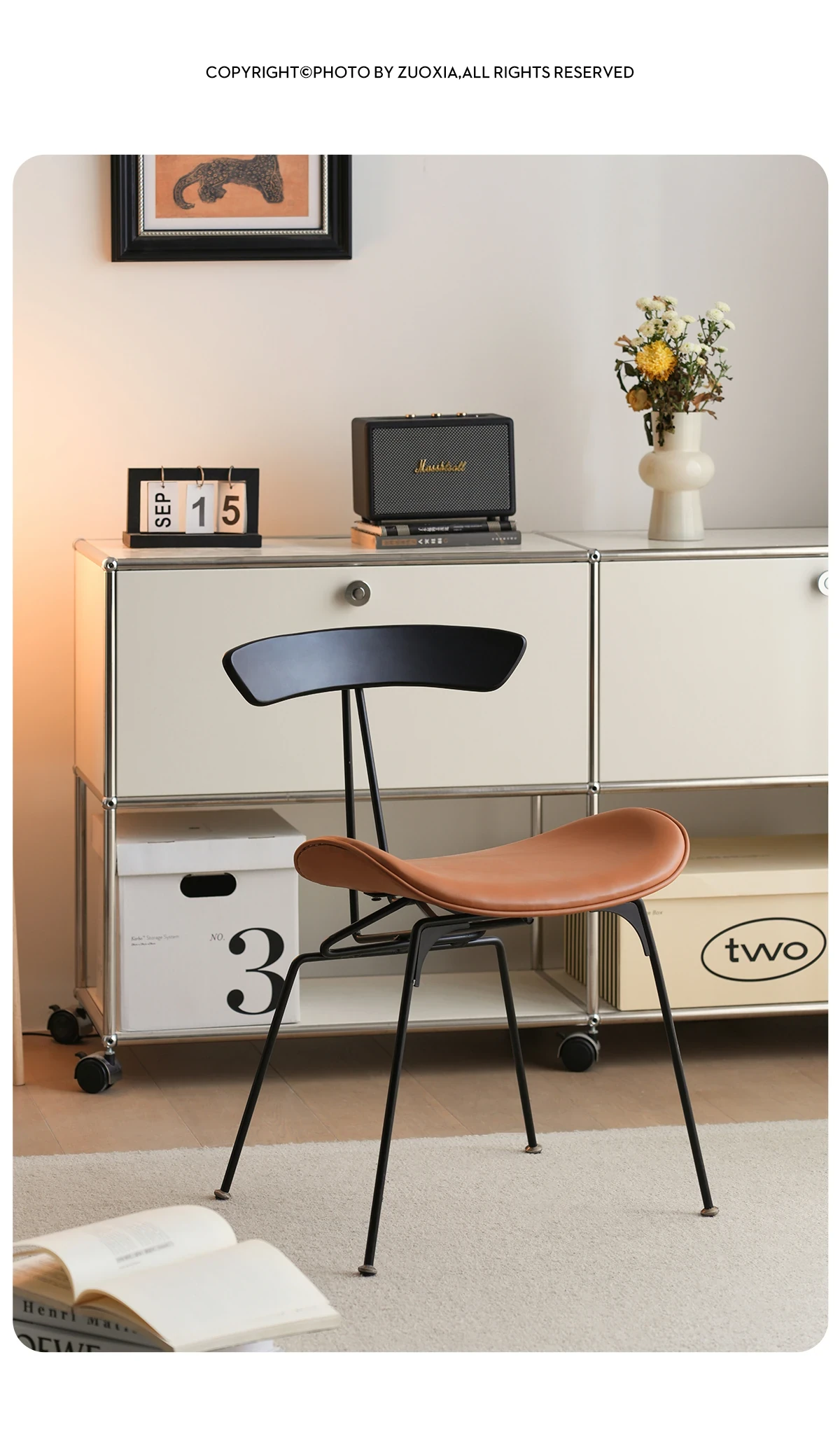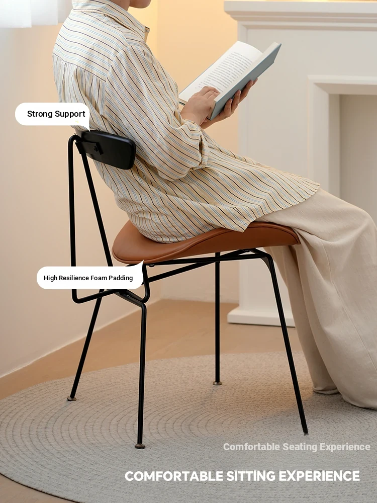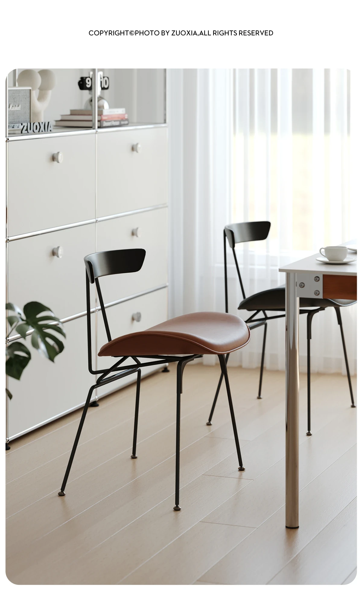 Vintage Industrial Style Brown Dining Chair with Iron Frame - Designer-Inspired Mid-Century Luxe Accent Chair for Home Dining Room, Perfect for Relaxation and Style